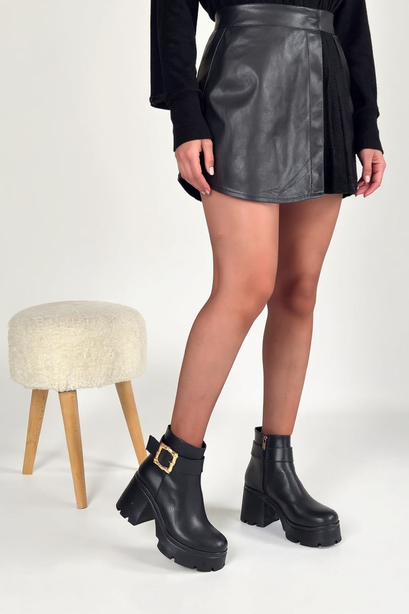 Pinma Siyah kalın topuklu bot, modern çizgileri ve zarif detaylarıyla dikkat çeker. Toka aksesuarı ve kalın topuk detayıyla sofistike bir görünüm sunarken, rahat taban yapısı sayesinde konforu da ön planda tutar. Hem günlük kombinlerinde hem de özel davetlerde güçlü bir stil yaratmak isteyen kadınlar için mükemmel bir tercih.