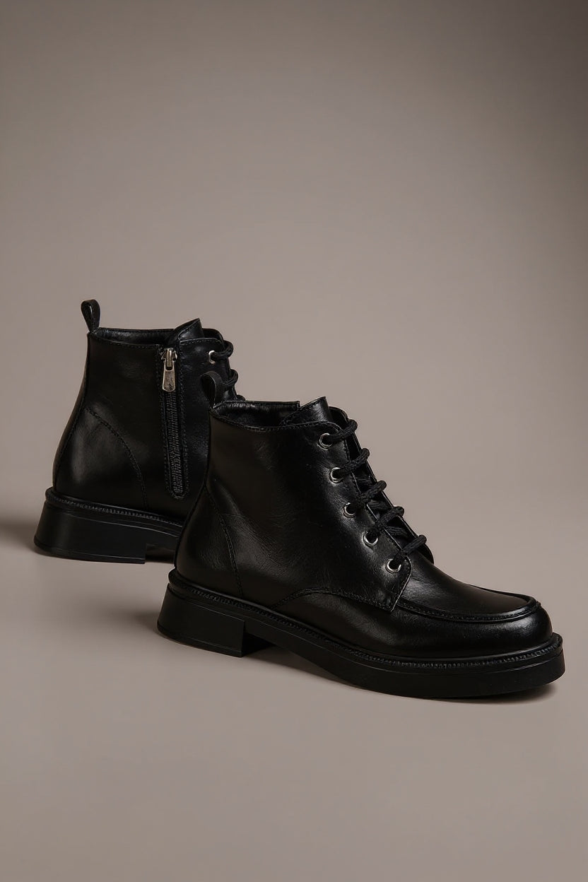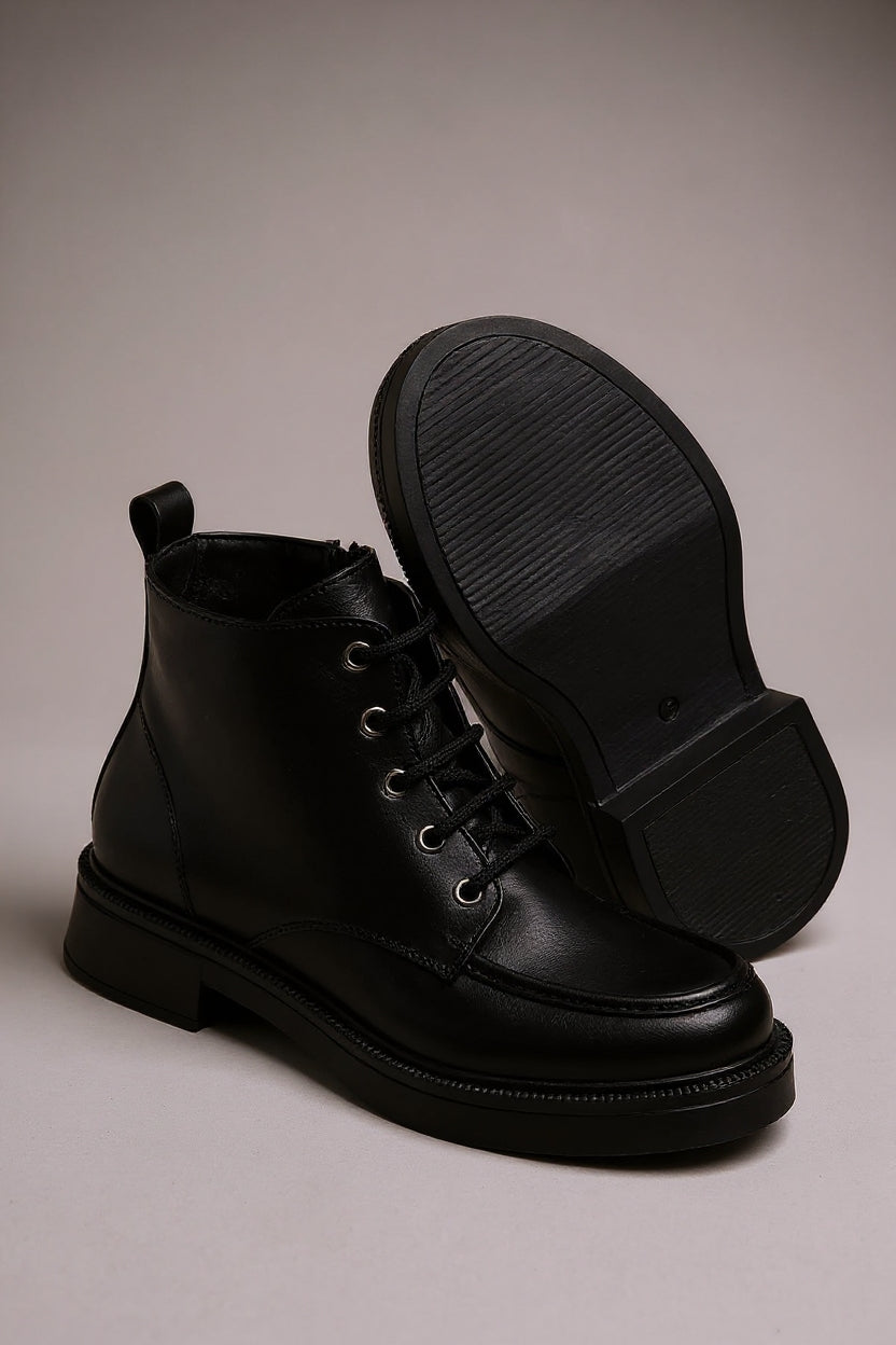Tayone Siyah Kırışık Rugan Bağcıklı Fermuarlı Kadın Bot