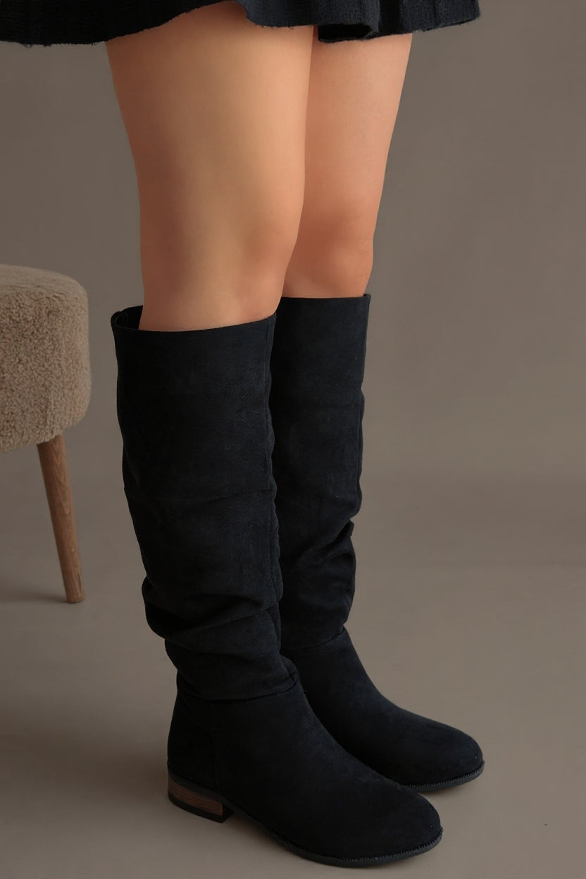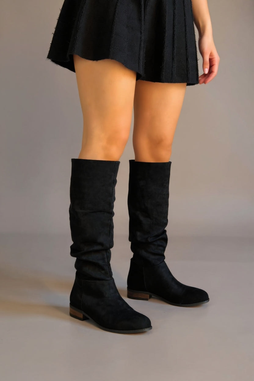 Klasik ve zarif bir görünüm için ideal tercih! Winda siyah süet çizme, diz altı körüklü yapısı ve sade formu ile şıklığı konforla buluşturur. 2 cm topuğu ve termo tabanı sayesinde gün boyu rahat bir kullanım sunarken, pad’li iç tabanı ile sıcak ve yumuşak bir his sağlar. Kış sezonunda hem tarz hem konfor arayanlar için mükemmel bir tamamlayıcı.