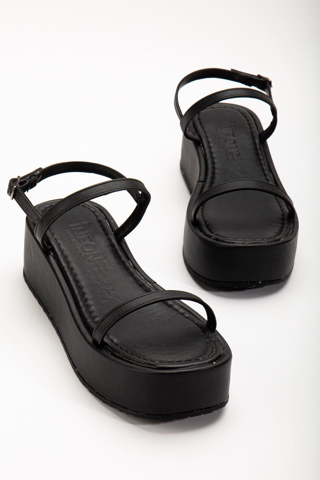 Adove Siyah Dolgu Topuk Kadın Sandalet