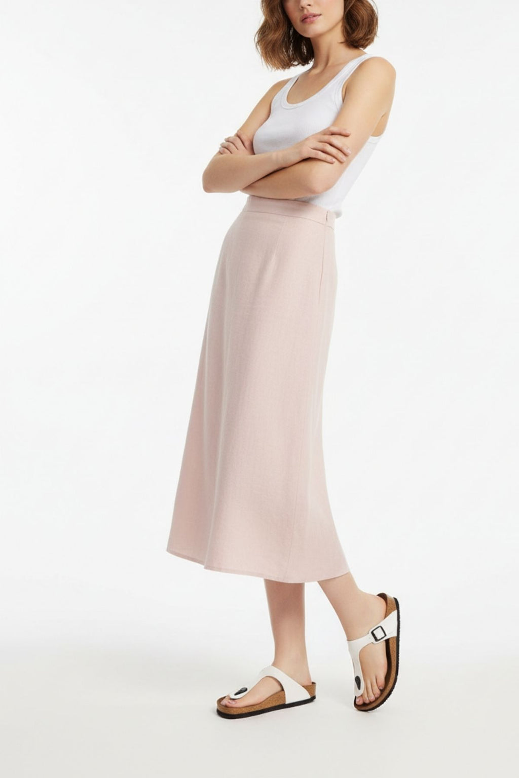 Yaz kombinlerinin vazgeçilmez tamamlayıcısı! Aksar beyaz nubuk parmak arası terlik, sade ve zamansız tasarımıyla günlük kullanım için konforlu bir alternatif sunar. Yumuşak dokulu nubuk yüzeyi ayağı nazikçe sararken, ayarlanabilir tokalı yapısı sayesinde kişisel uyum sağlar. Hafif Eva tabanı ile adımlarınızı destekler, gün boyu rahat bir kullanım deneyimi sunar. Günlük kombinlerden sahil stiline kadar geniş bir kullanım alanına sahiptir.