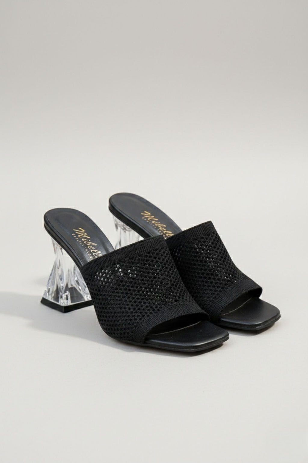 Akva Kadın Siyah Triko Şeffaf Topuklu Terlik