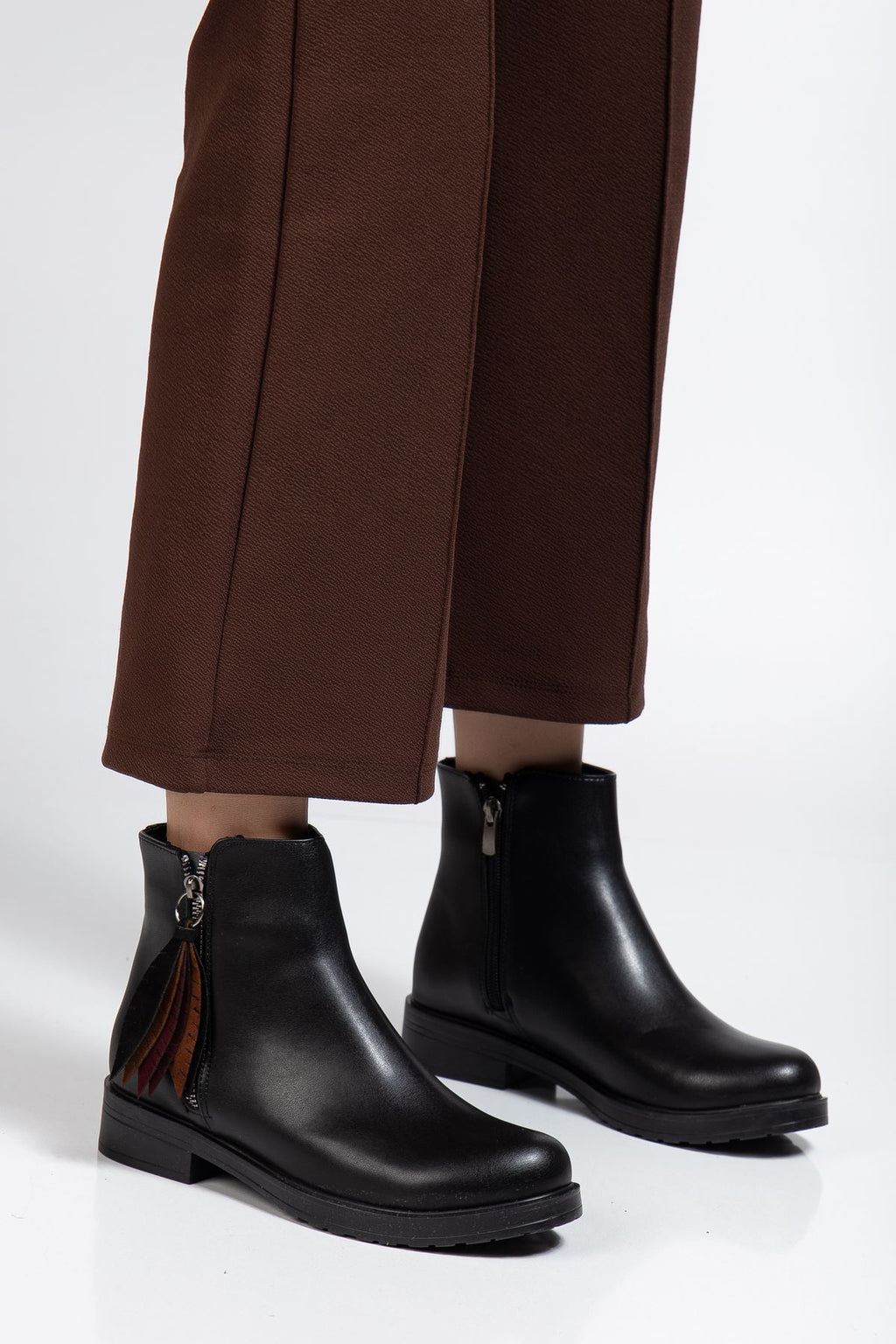 Modern detaylarla klasik tasarımı birleştiren Alenyaz Siyah Kadın Bot, zarif yaprak süslemeleriyle fark yaratıyor. PU deri materyaliyle uzun ömürlü kullanım sağlarken, fermuarlı yapısı kolay giyip çıkarmayı mümkün kılıyor. Rahat tabanı ve yumuşak iç astarı sayesinde gün boyu konfor sunan bu model, hem şehir yaşamında hem de günlük kombinlerinde stil sahibi bir duruş kazandırır.
