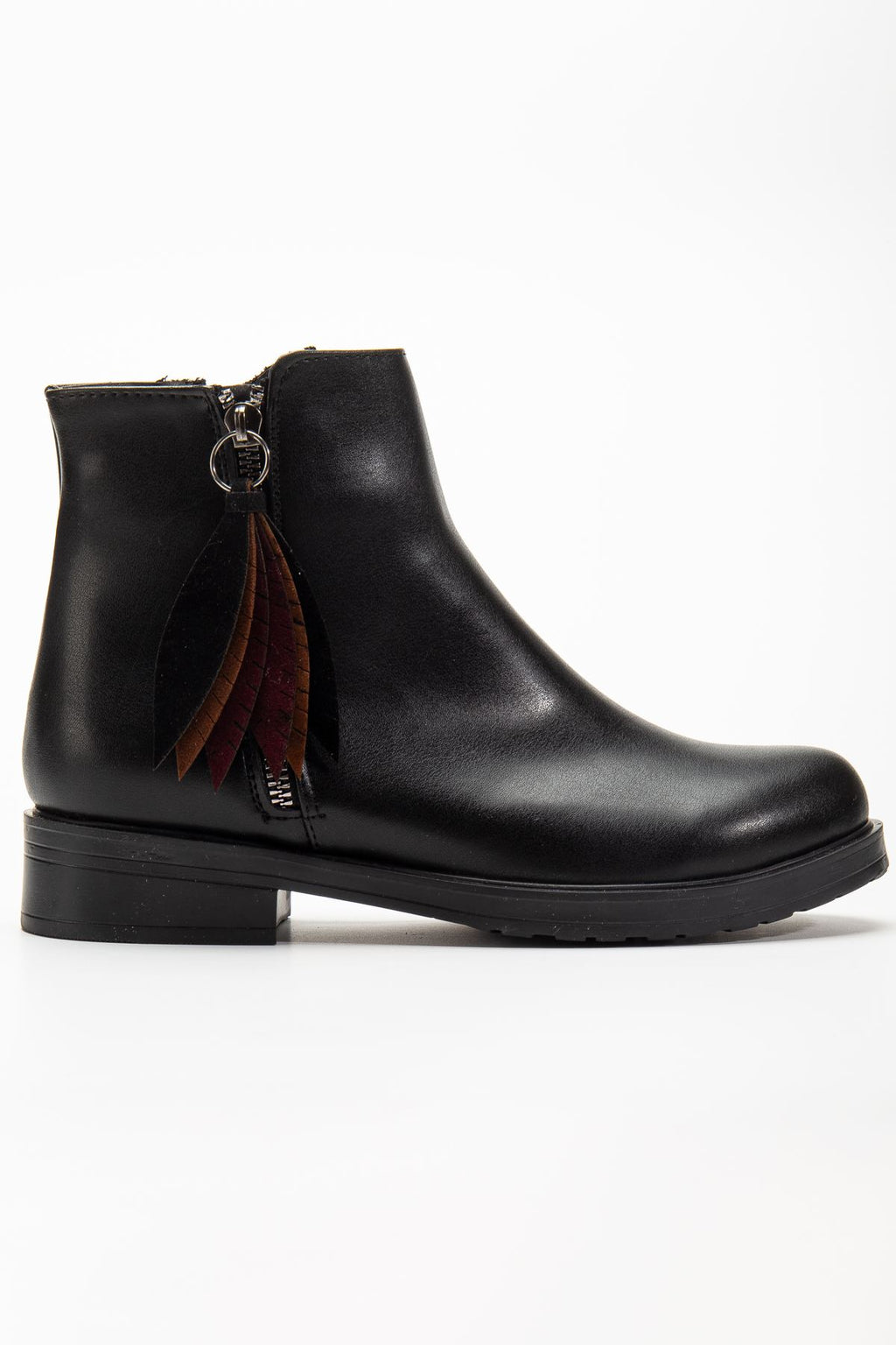 Alenyaz Siyah Yaprak Desenli Fermuarlı Kadın Bot
