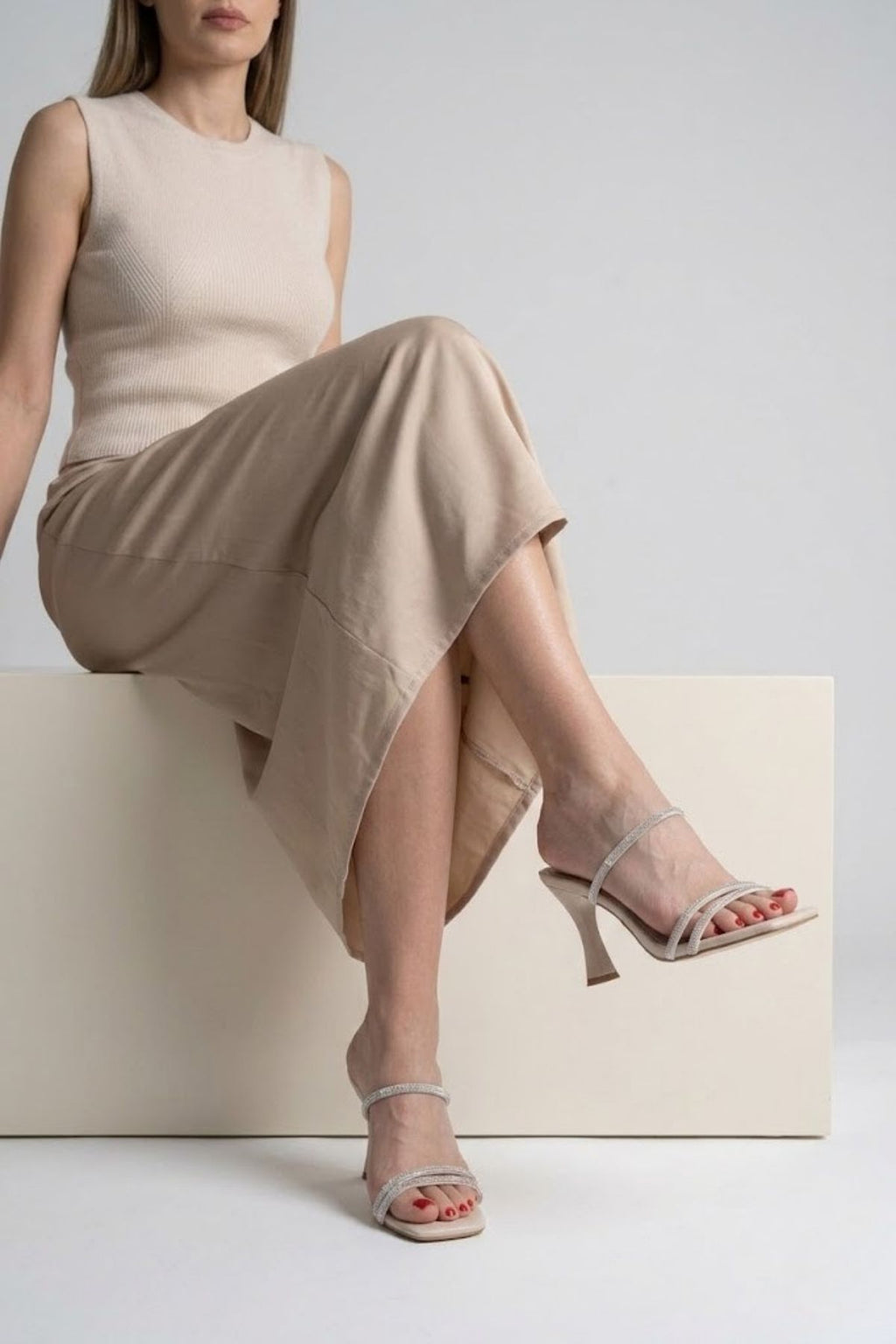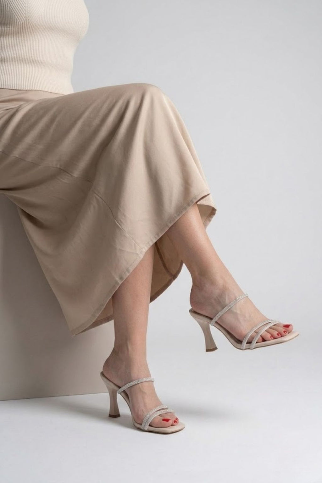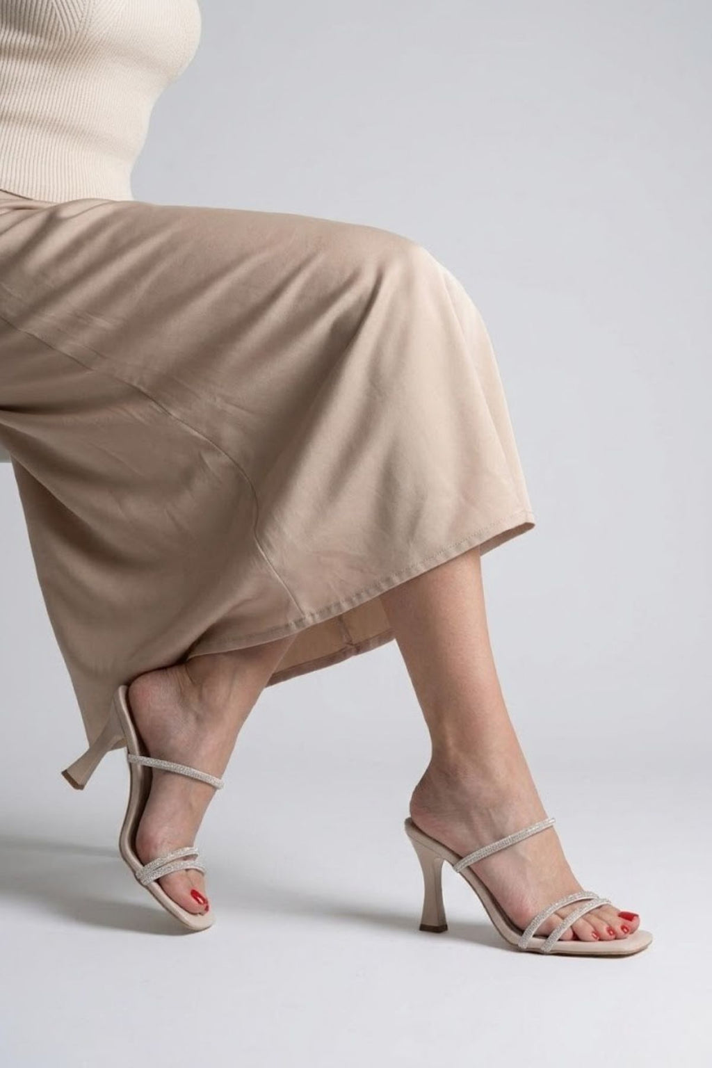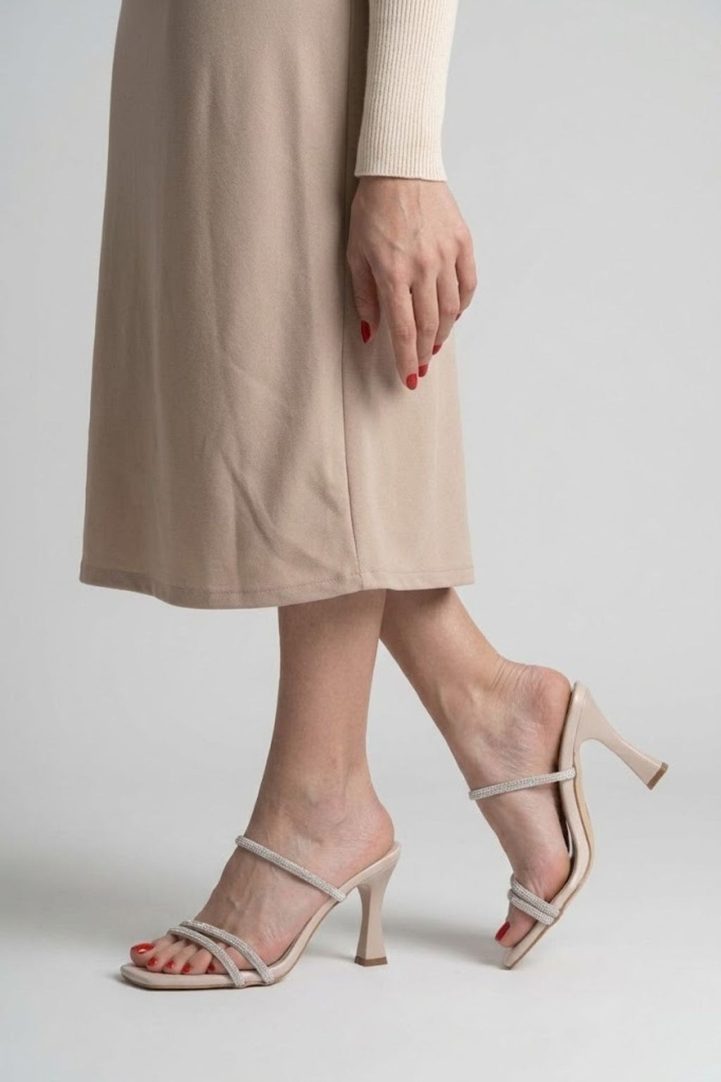 Alvina Kadın Bej Taş İşlemeli İnce Topuklu Abiye Ayakkabı