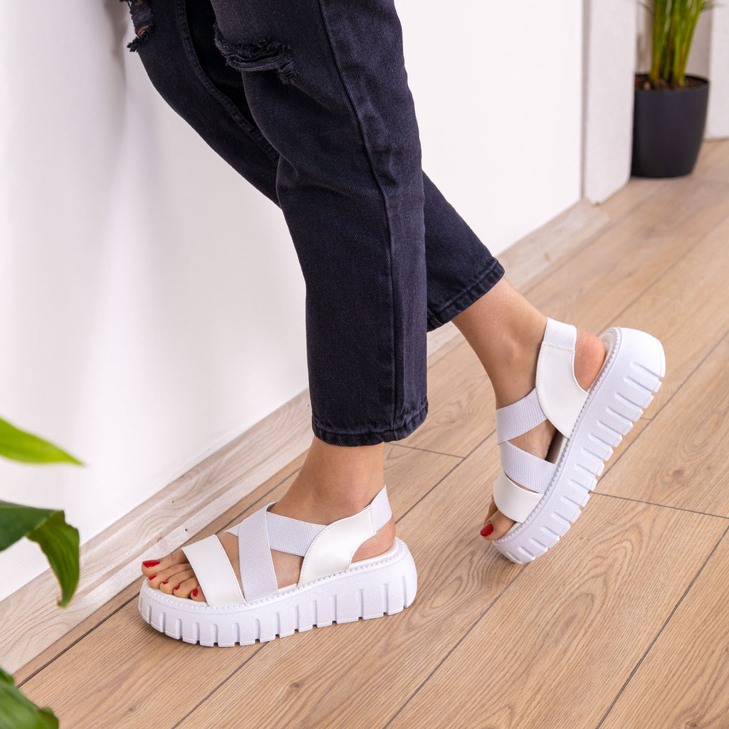 Ardeka Bantlı Yüksek Taban Beyaz Kadın Sandalet :