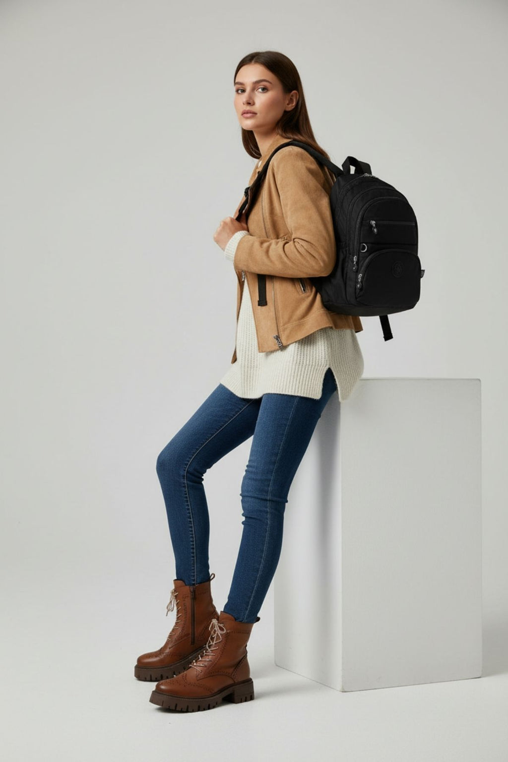 Geniş bölmelere sahip bir çanta. Ön kısımda fermuarlı küçük bölmeleri bulunur. Ana bölmesi geniş iç yapısına sahiptir. Ana bölmesinin içinde küçük bölmeleri bulunur bu sayede kullanışlı bir çantadır. Sırt askıları ayarlanabilir özelliğe sahiptir.