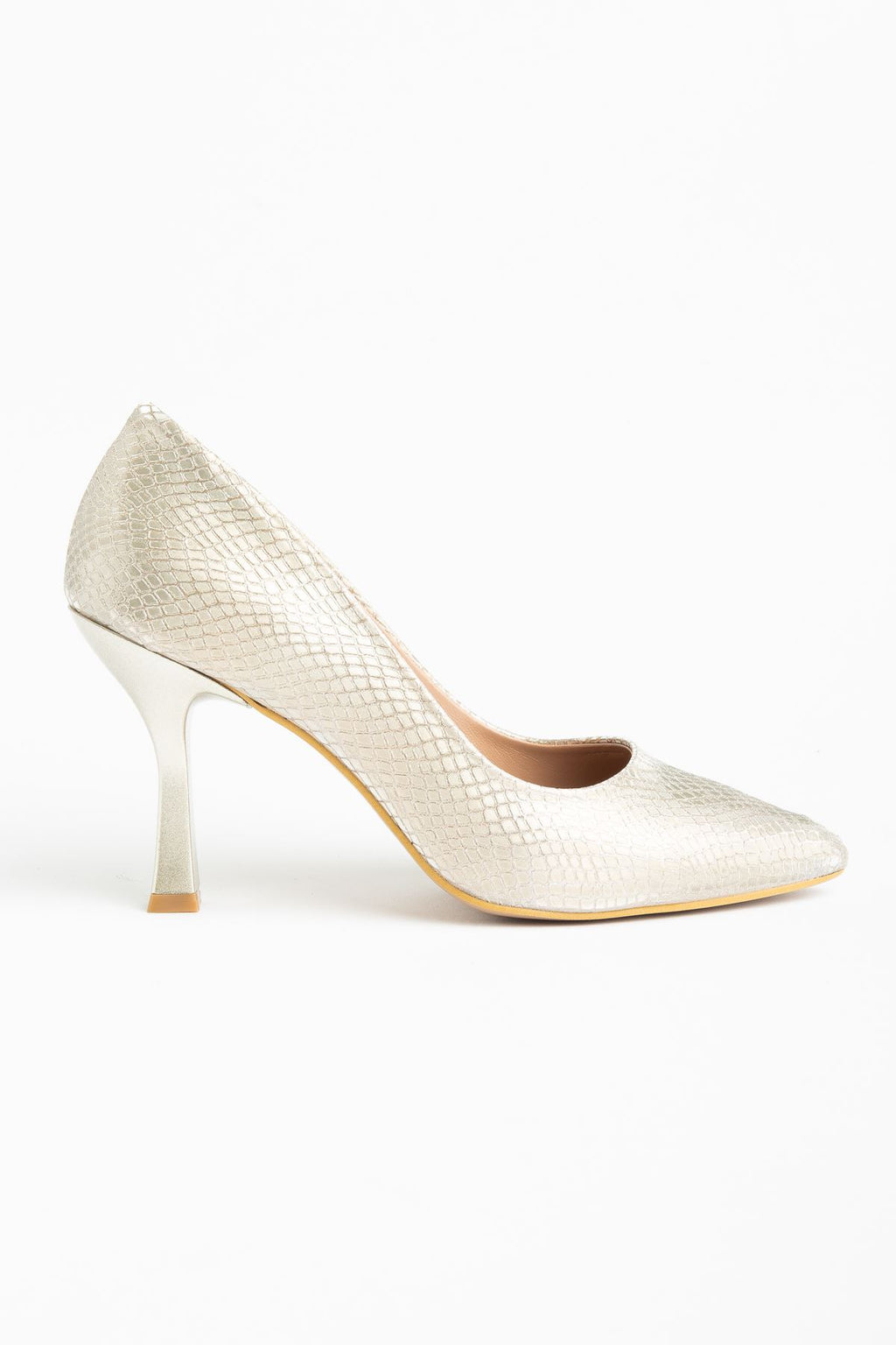 Pul desenli yüzeyiyle öne çıkan Aseng modeli, sivri burun formu ve dengeli ince topuk yapısıyla zarif bir siluet oluşturur. Ayağı saran kesimi sayesinde net bir duruş sunarken, yalın tasarımıyla hem klasik hem modern kombinlere kolayca uyum sağlar. Zamansız çizgileriyle stilini güçlü ama ölçülü bir şekilde tamamlar.