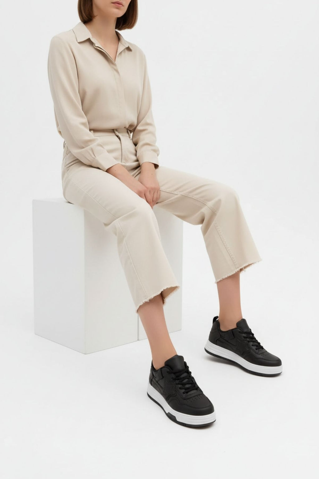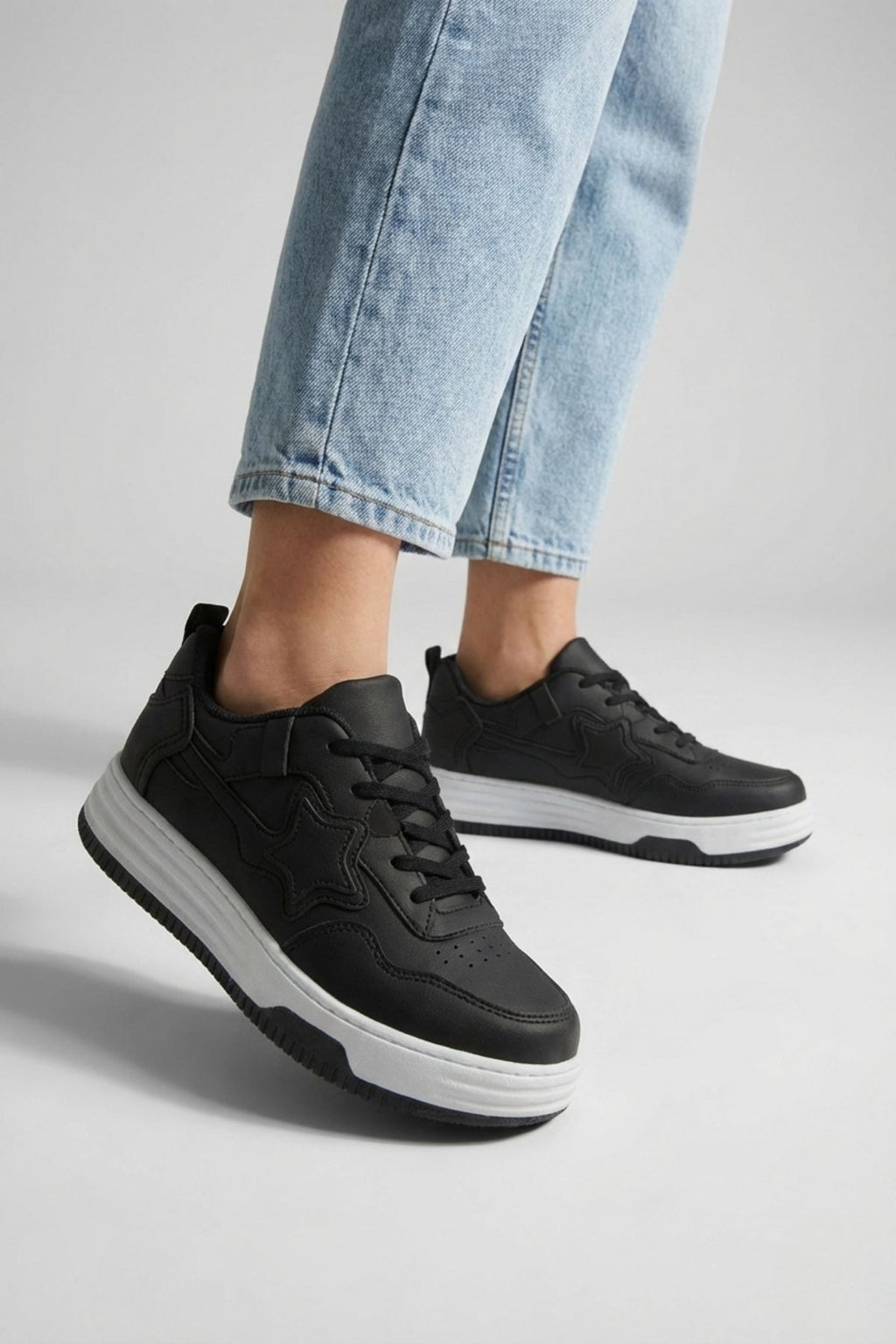 Thaes Kadın Hakiki Süet Deri Siyah Spor Ayakkabı