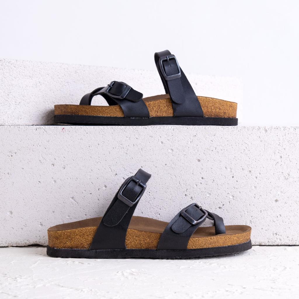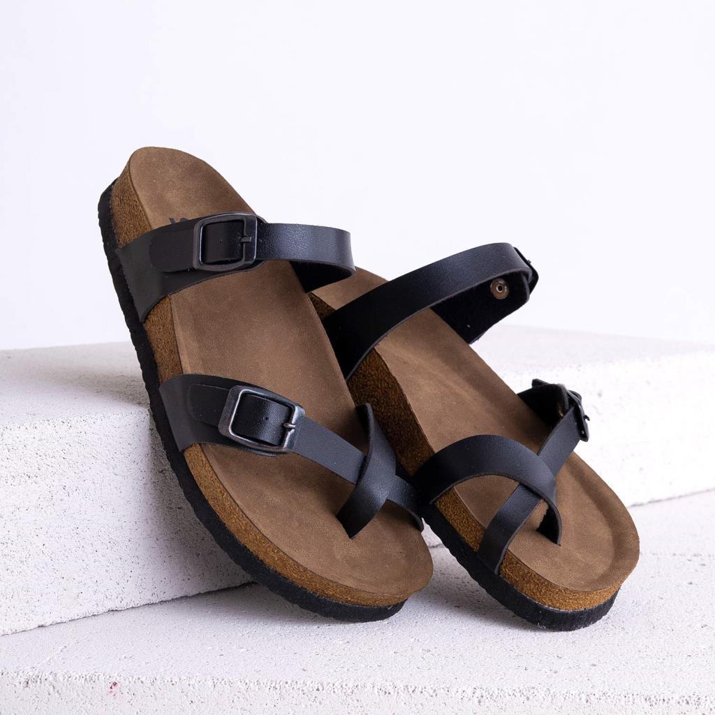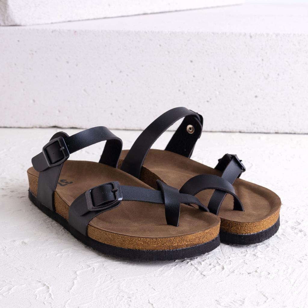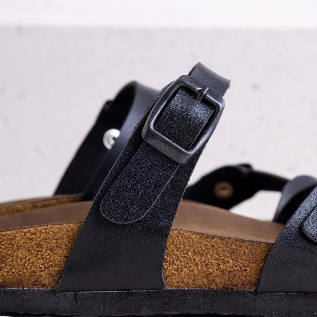 Numba Siyah Hakiki Deri Çapraz Bantlı Kadın Terlik