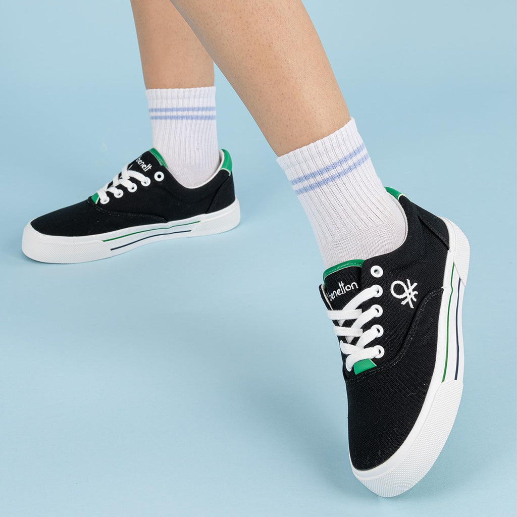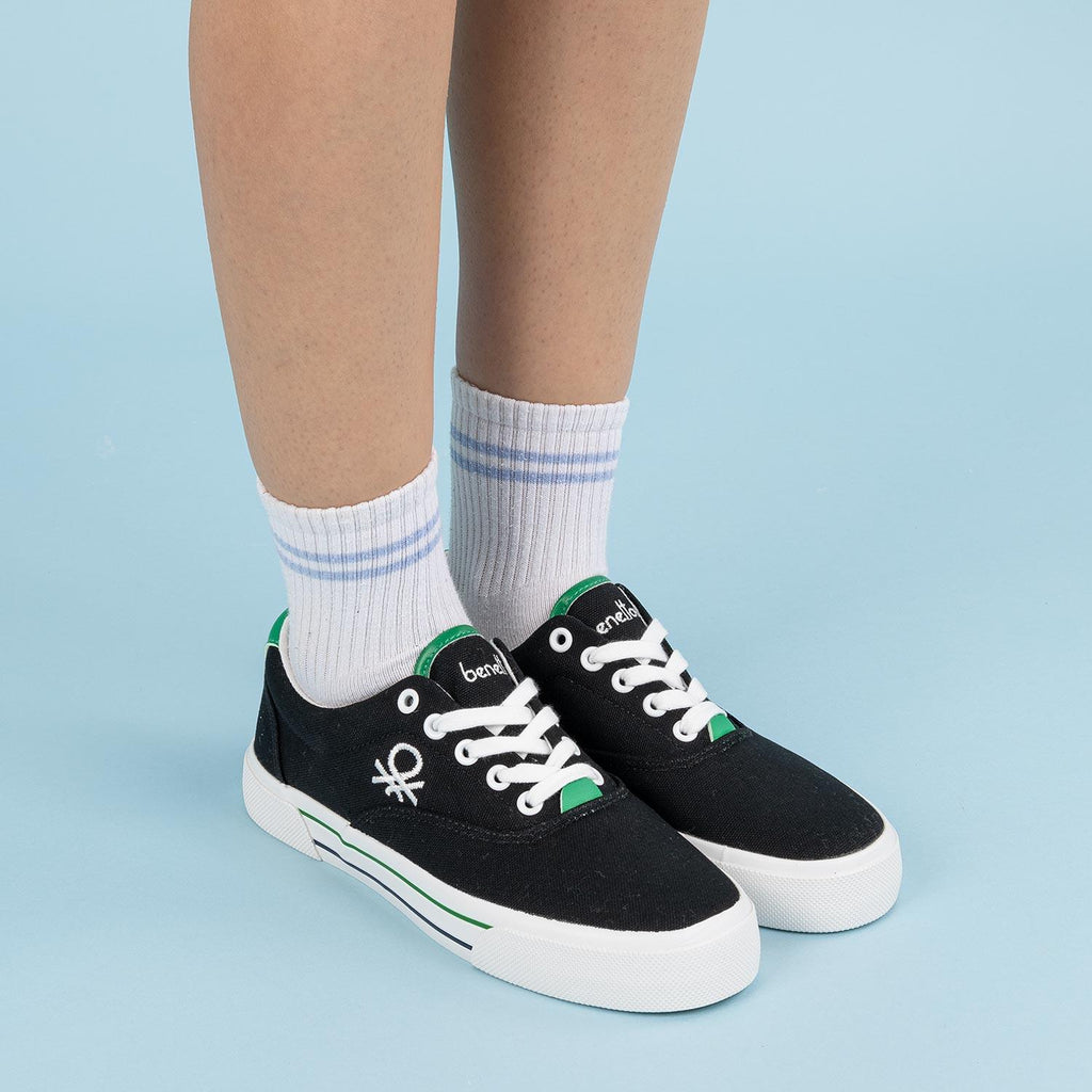 Benetton Pelova Kadın Keten Siyah Beyaz Spor Ayakkabı BNI-10091
