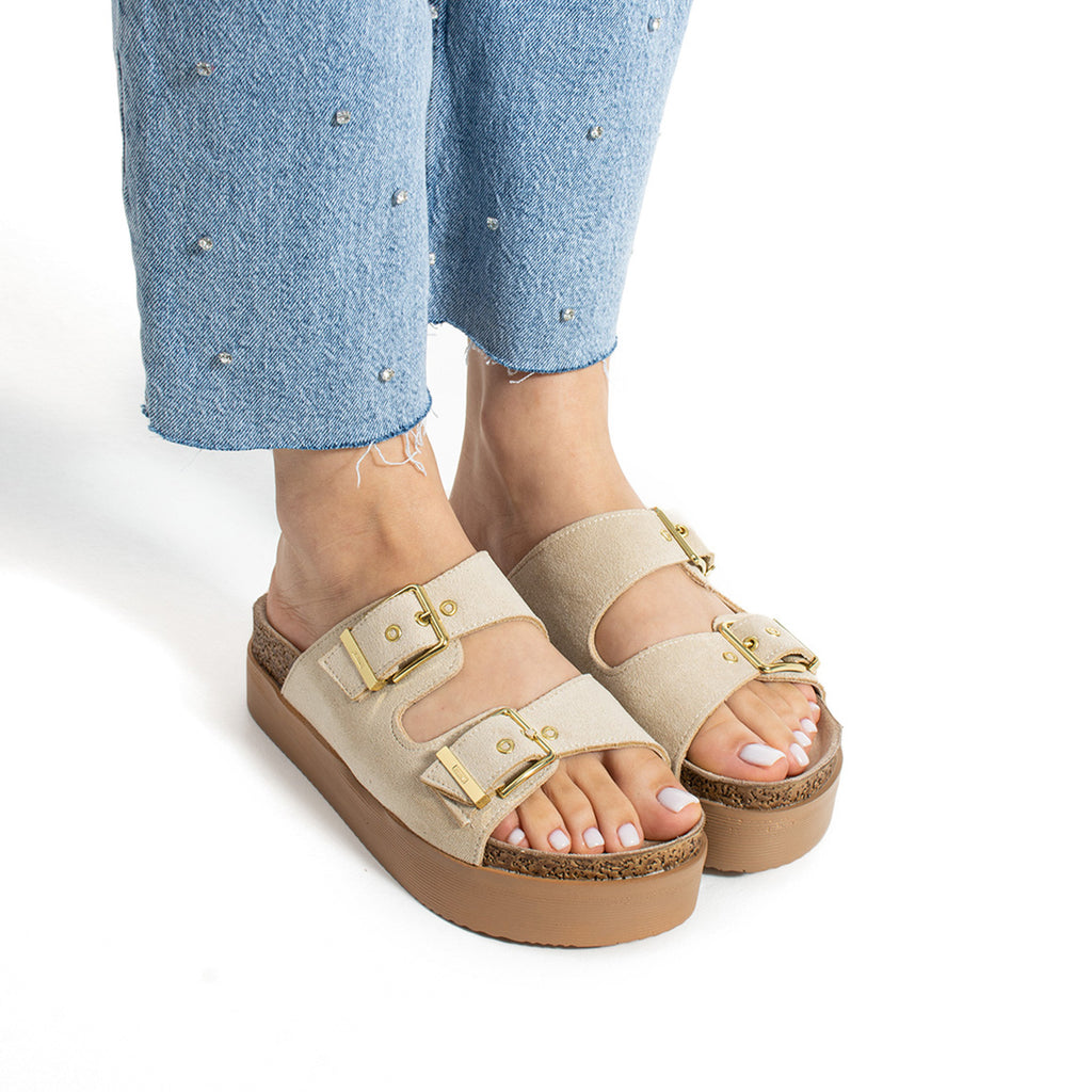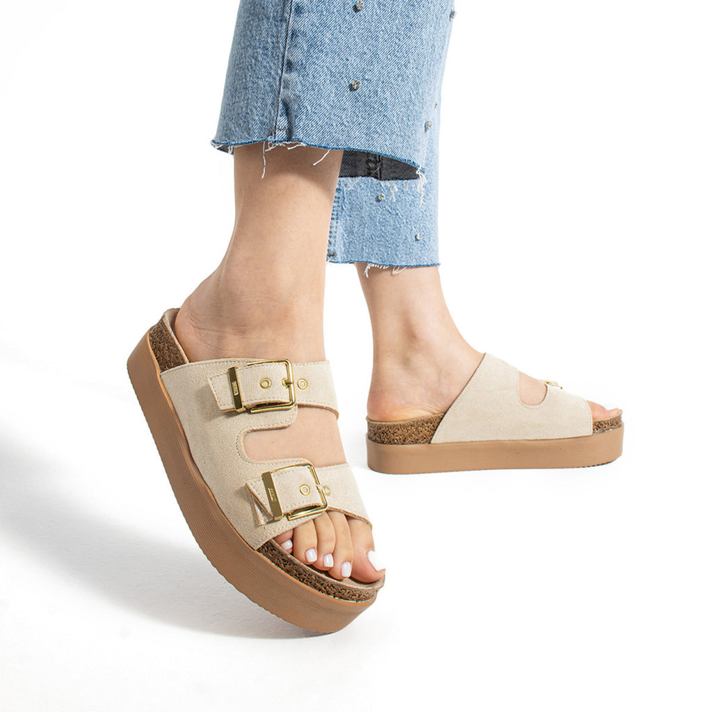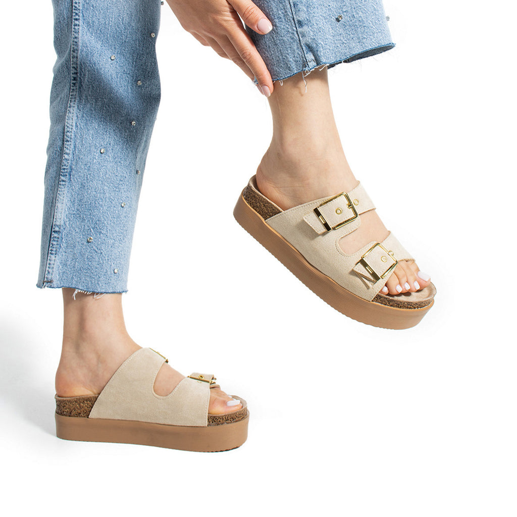 Blake Kadın Ayarlanabilir Tokalı Ten Süet Terlik
