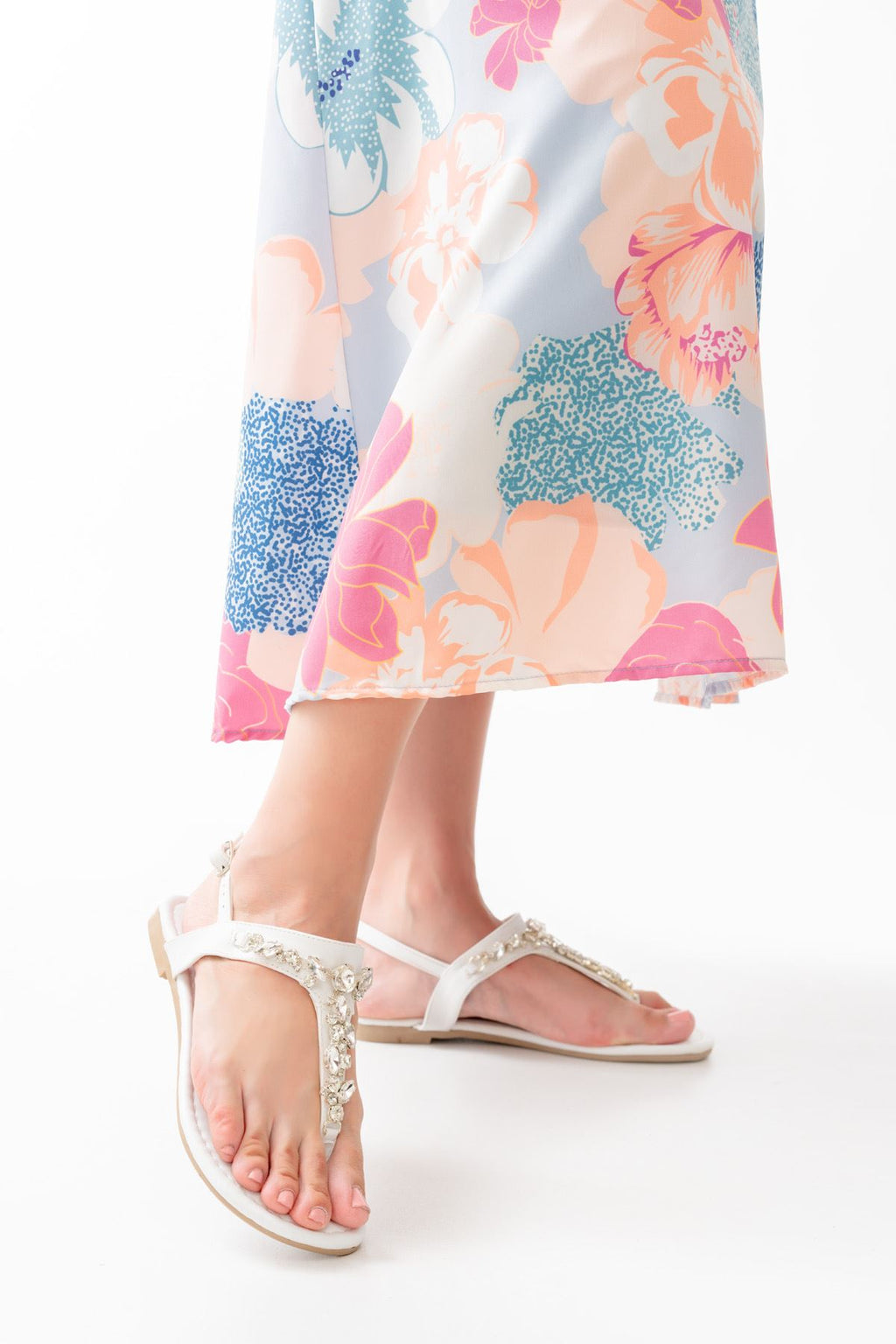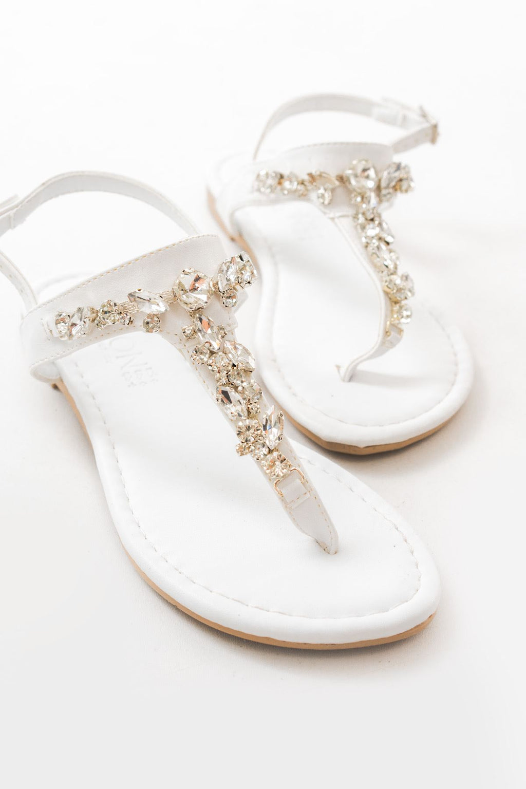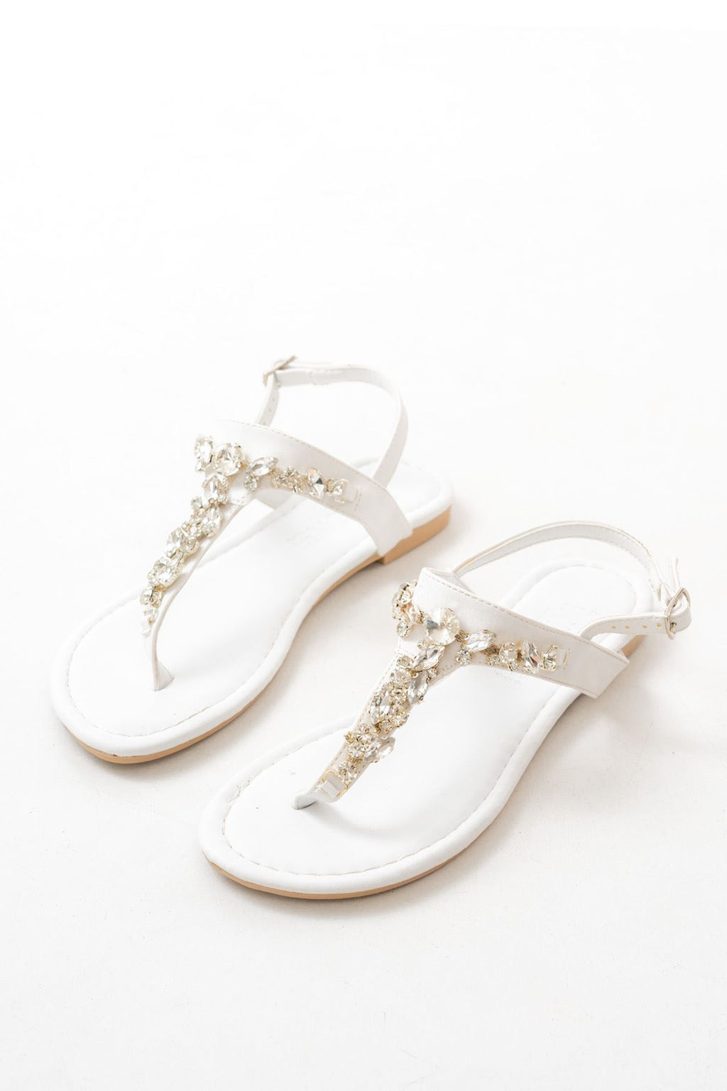 Bolvans Beyaz Gümüş Taşlı Parmak Arası Kadın Sandalet