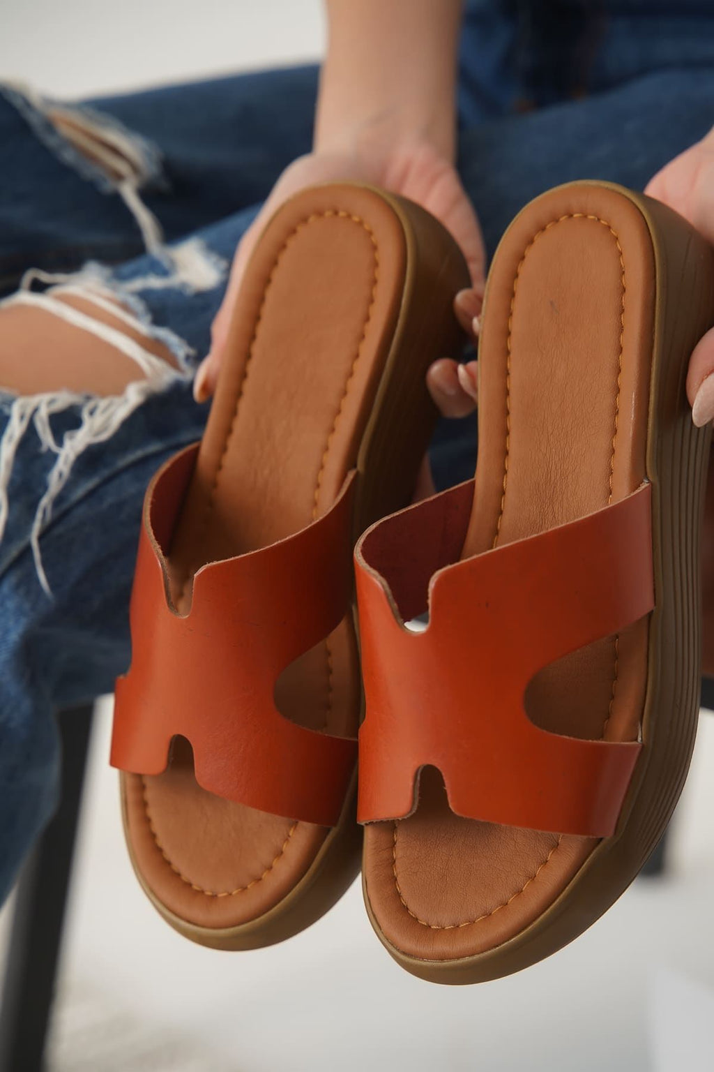 Her adımda fark yaratan bir tarz! Esnek hakiki deri malzemesiyle ayağın doğal kıvrımlarına uyum sağlayan bu hakiki deri terlik, gün boyu süren hareketliliğe konforla eşlik eder. Zarif bant detayı ve klasik tasarıma modern bir yorum katıyor. Hafta sonu kaçamaklarından günlük şehir hayatına kadar her stile kolayca uyum sağlar.