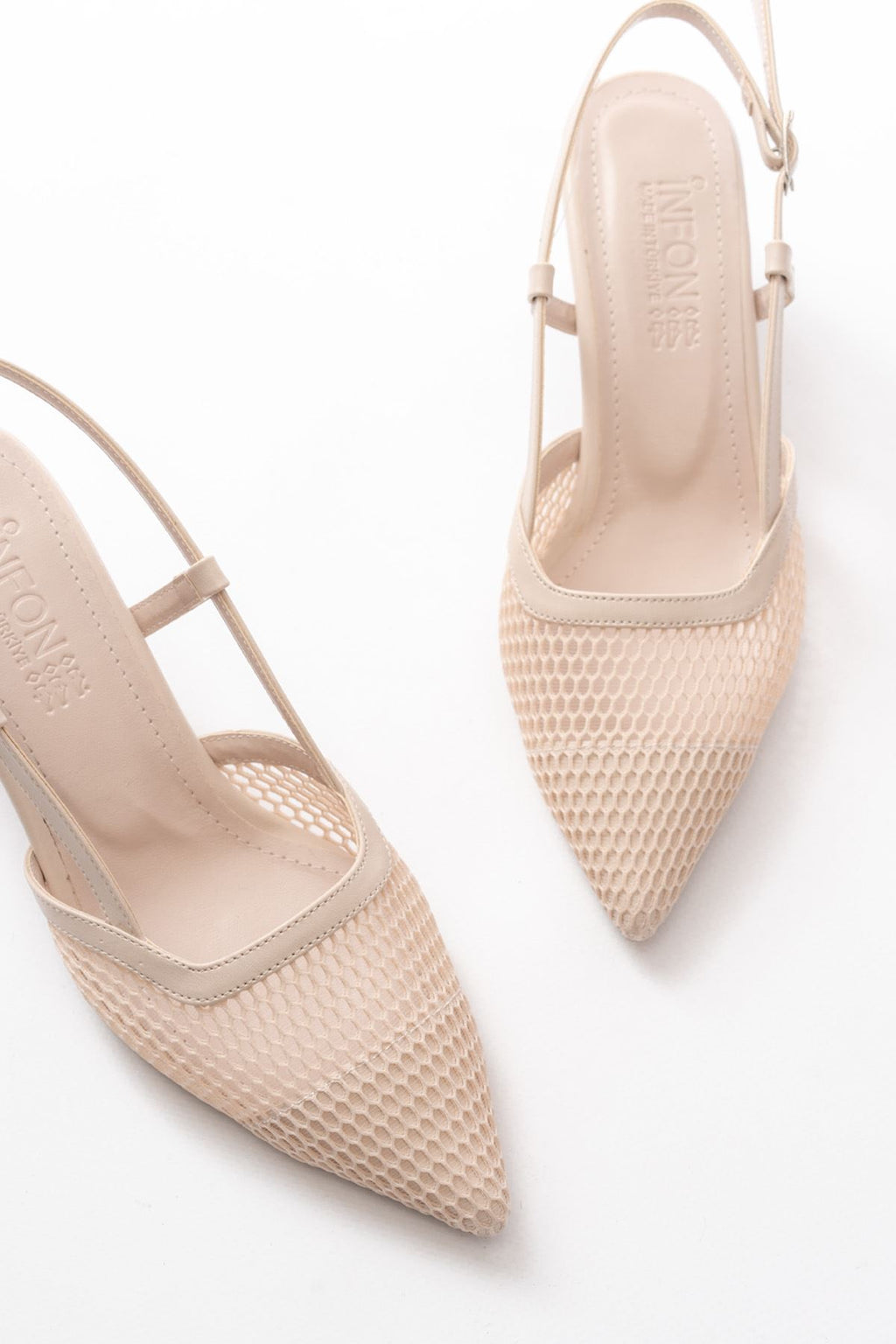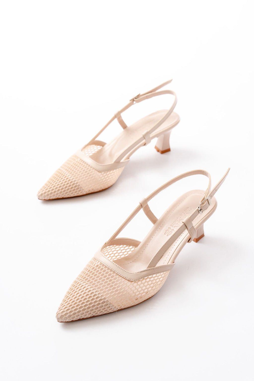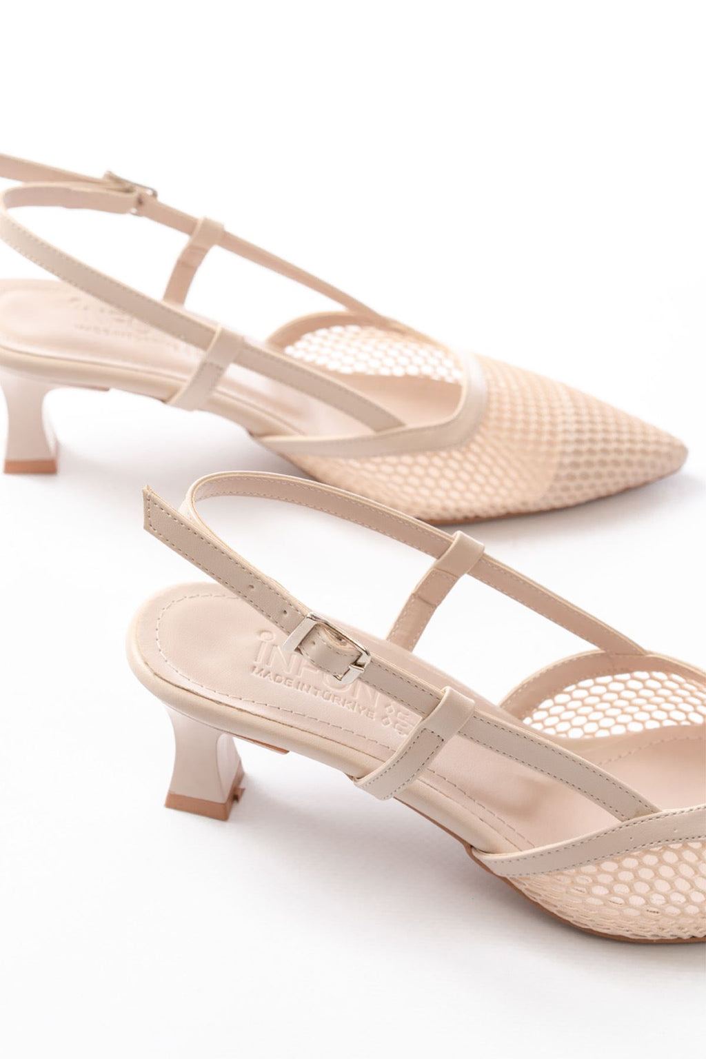 Camiry Bej Fileli Arkası Açık Topuklu Ayakkabı