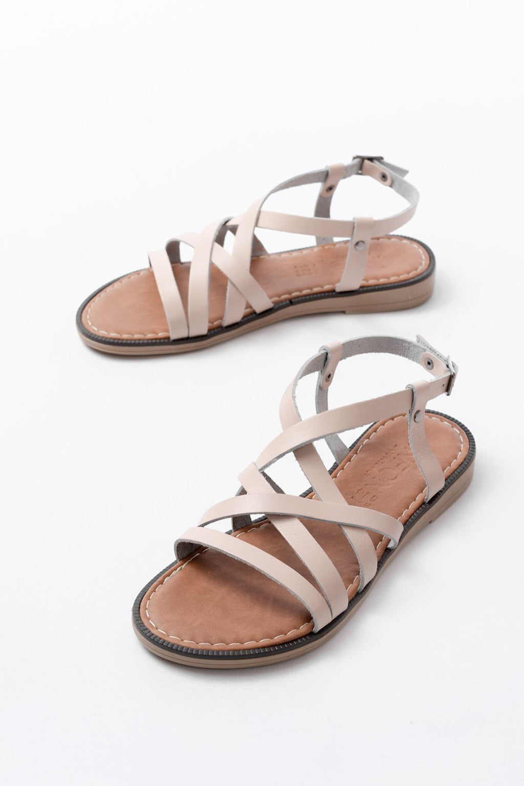 Cernia Bej Hakiki Deri Kadın Sandalet
