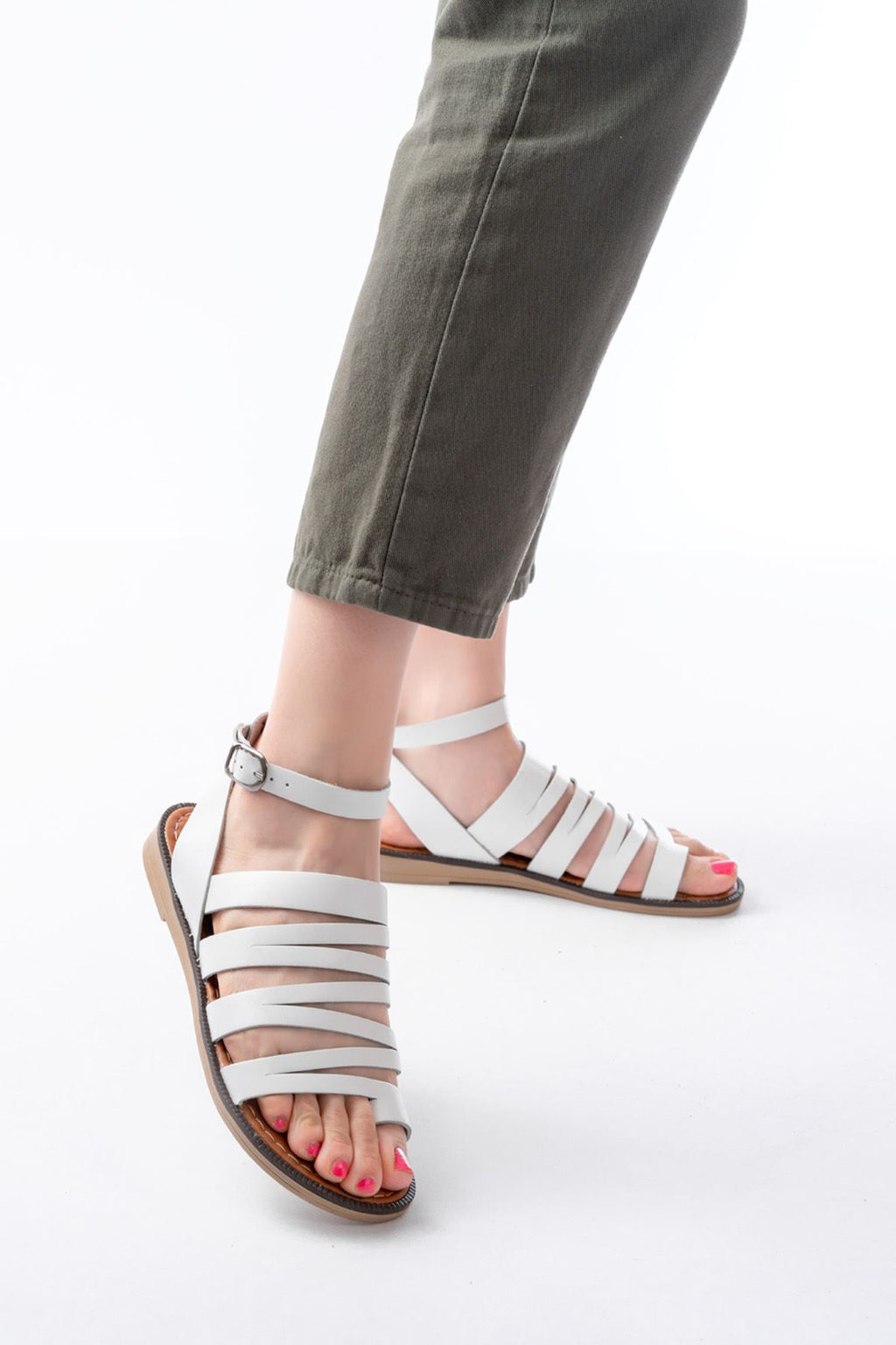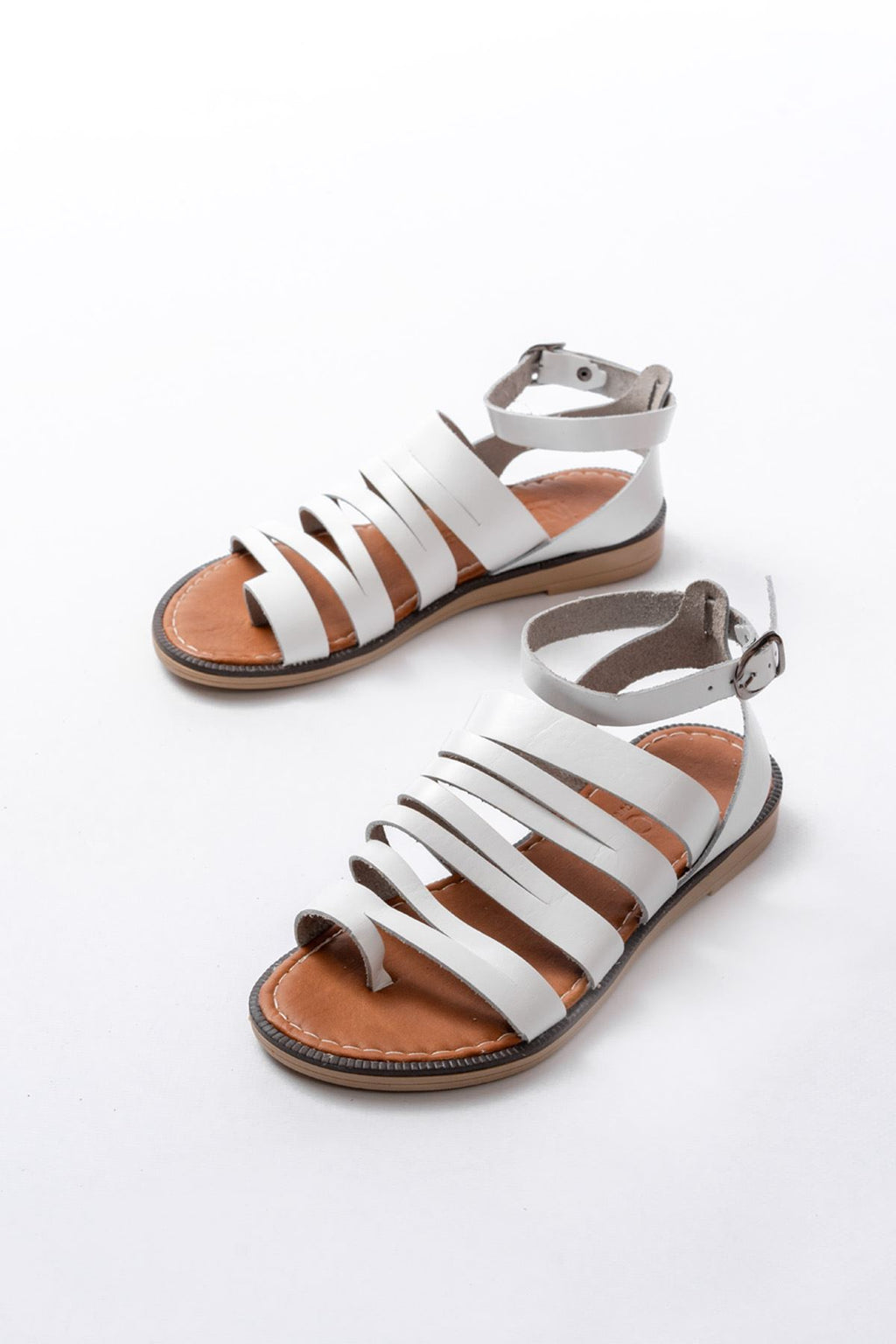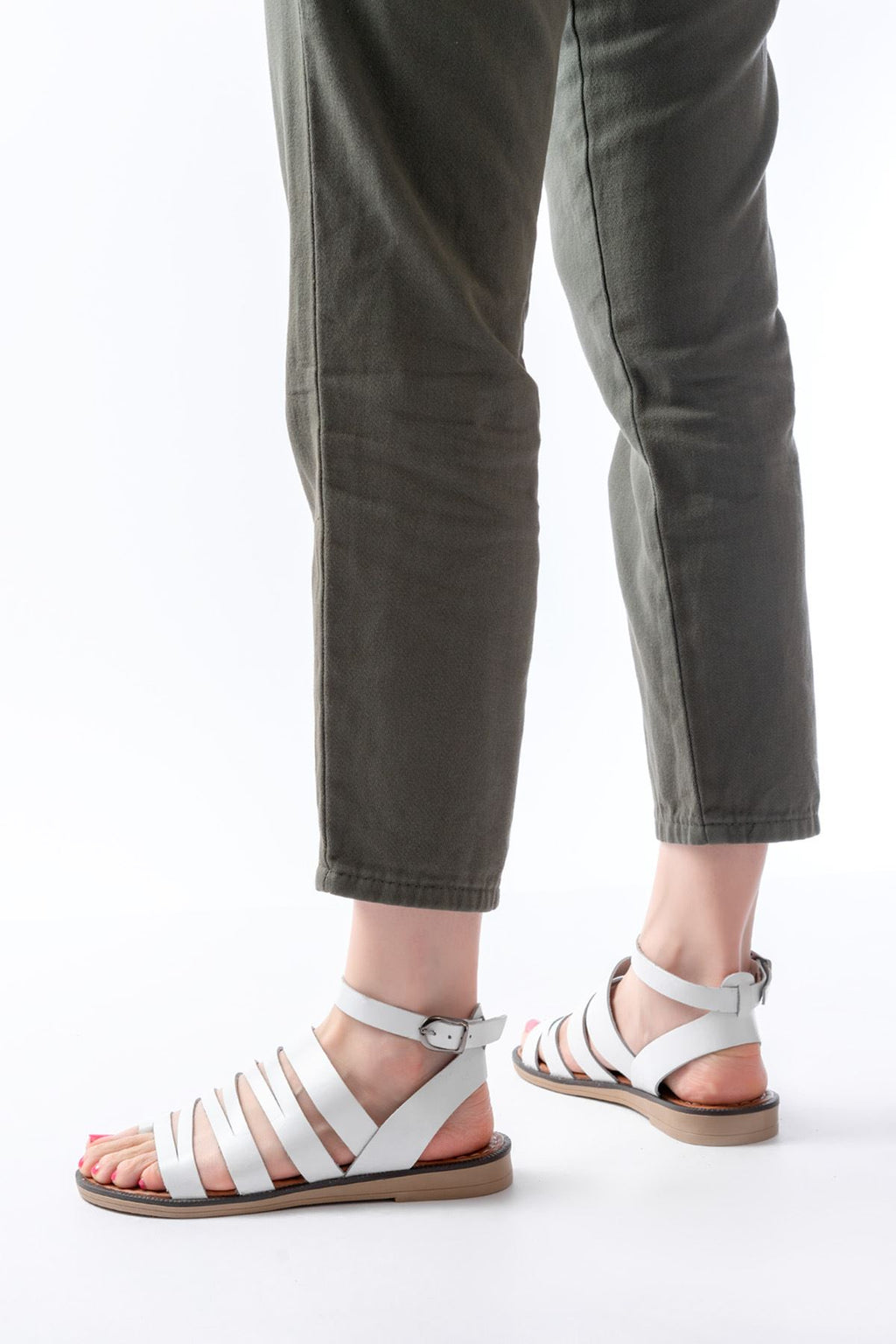 Chemy Beyaz Hakiki Deri Kadın Sandalet