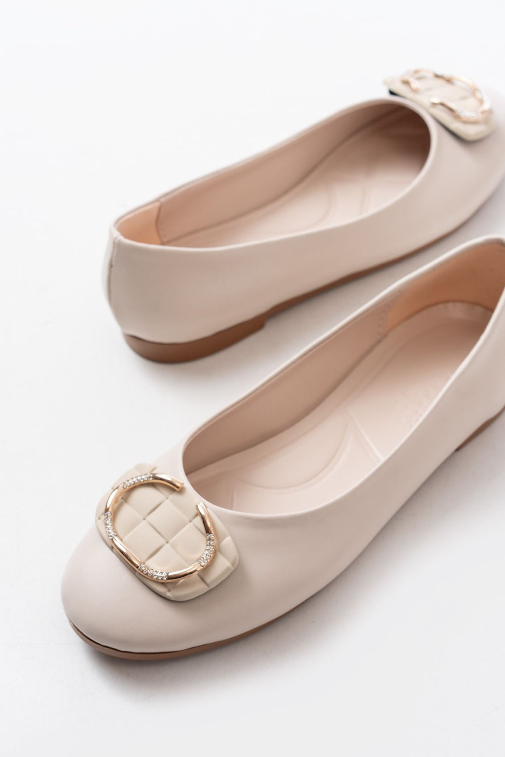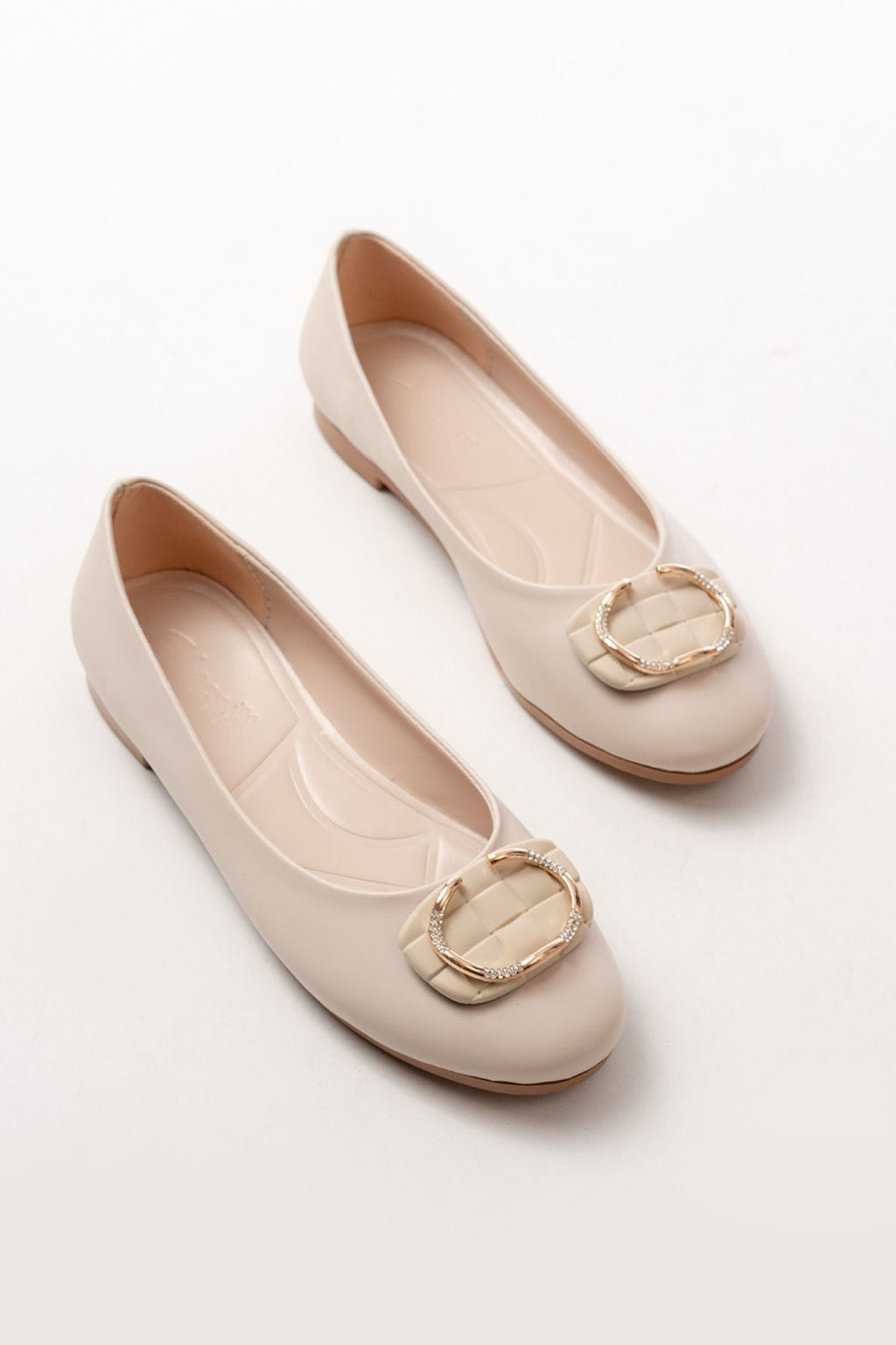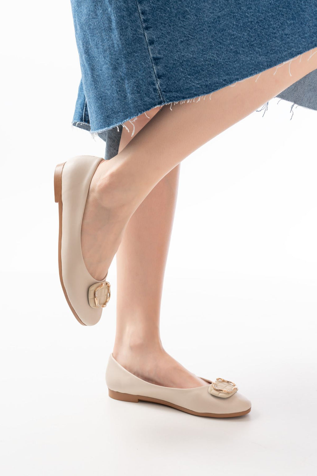 Cleren Bej Tokalı Aksesuarlı Kadın Babet Ayakkabı