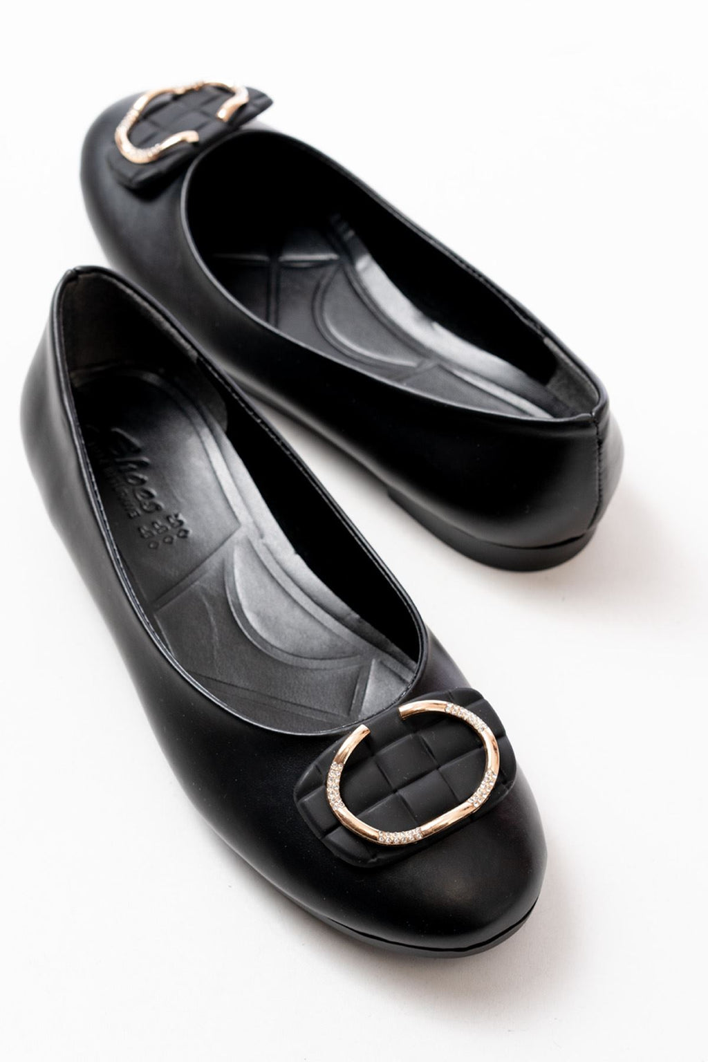 Cleren Siyah Tokalı Aksesuarlı Kadın Babet
