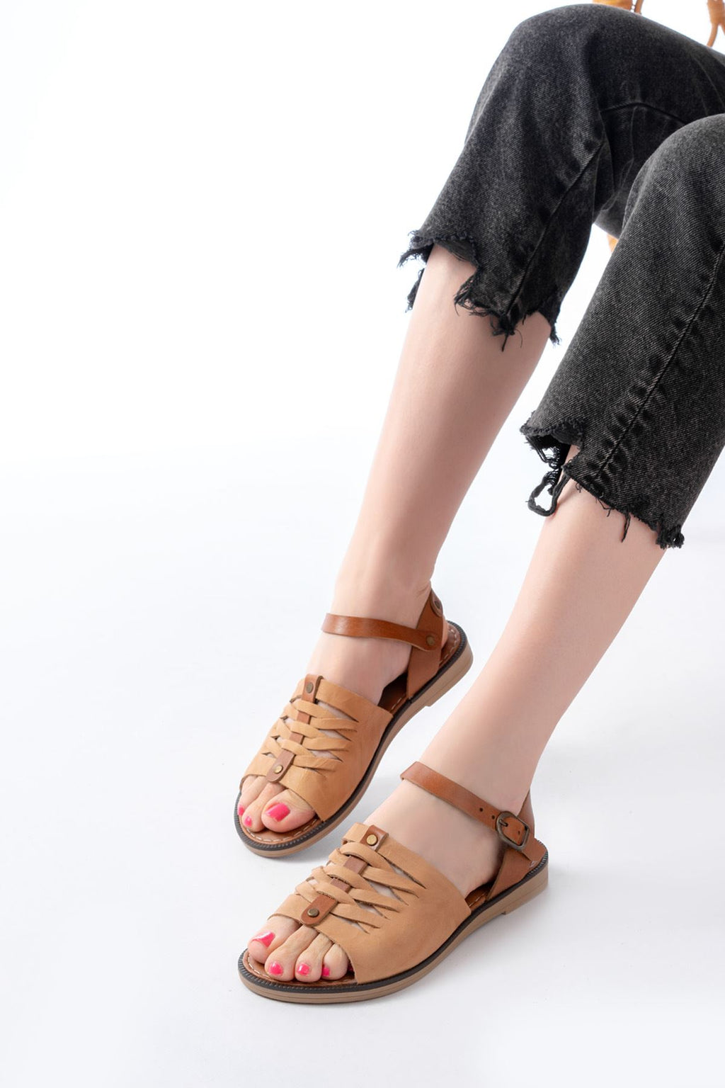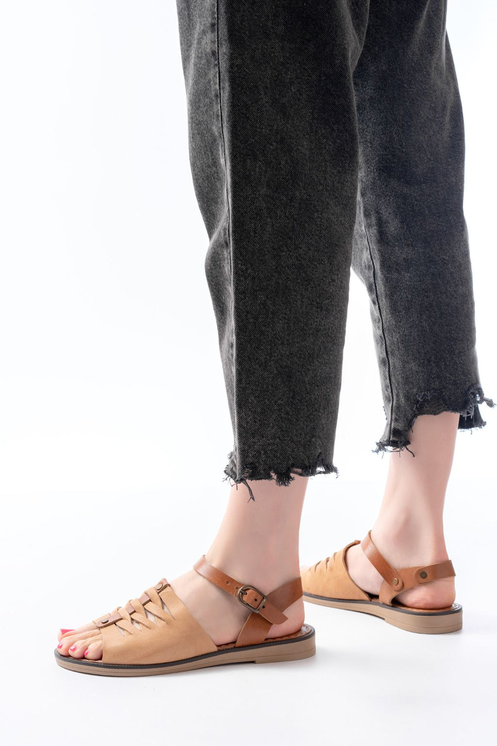 Cynikar Bej Hakiki Deri Kadın Sandalet