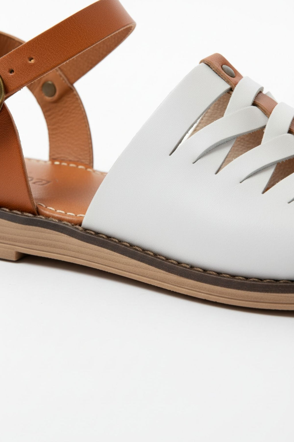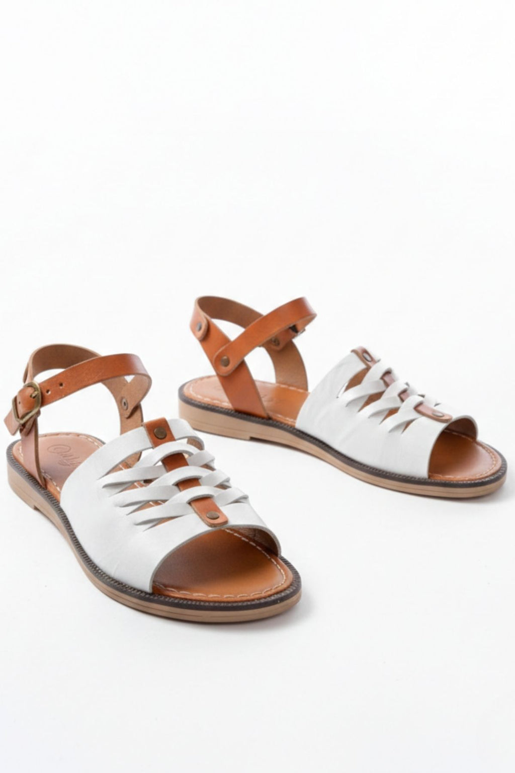 Cynikar Beyaz Hakiki Deri Kadın Sandalet