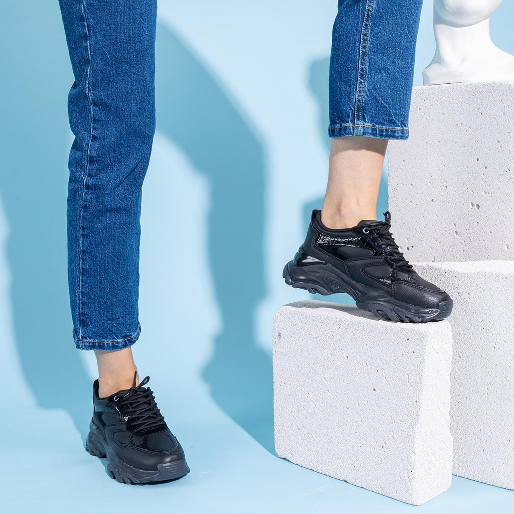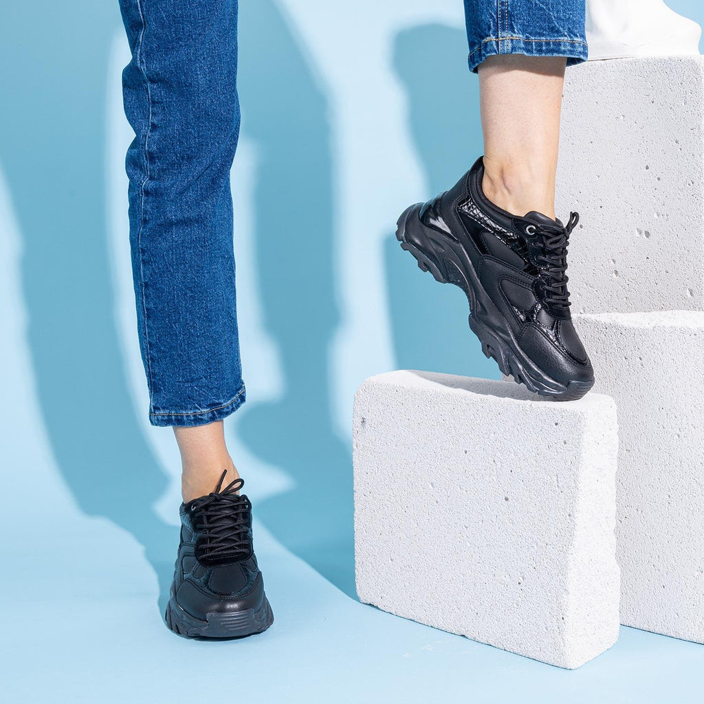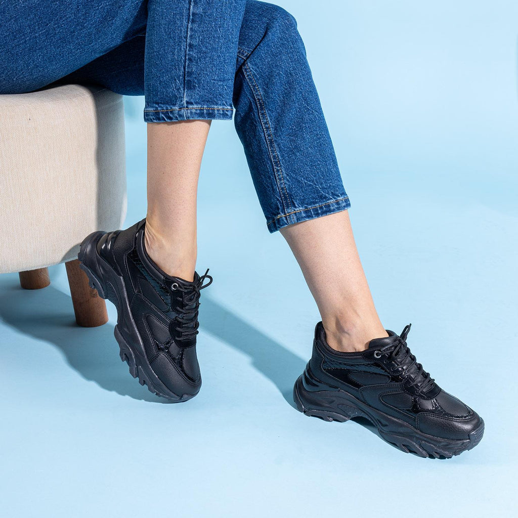 Thaes Kadın Hakiki Süet Deri Siyah Spor Ayakkabı