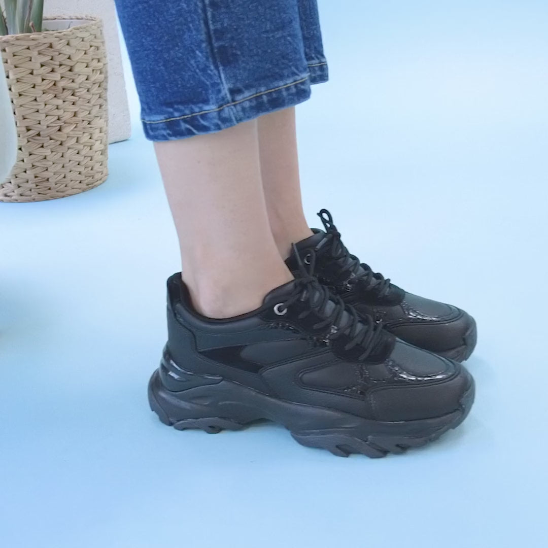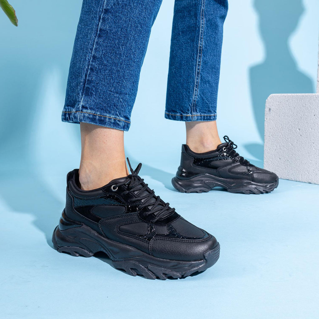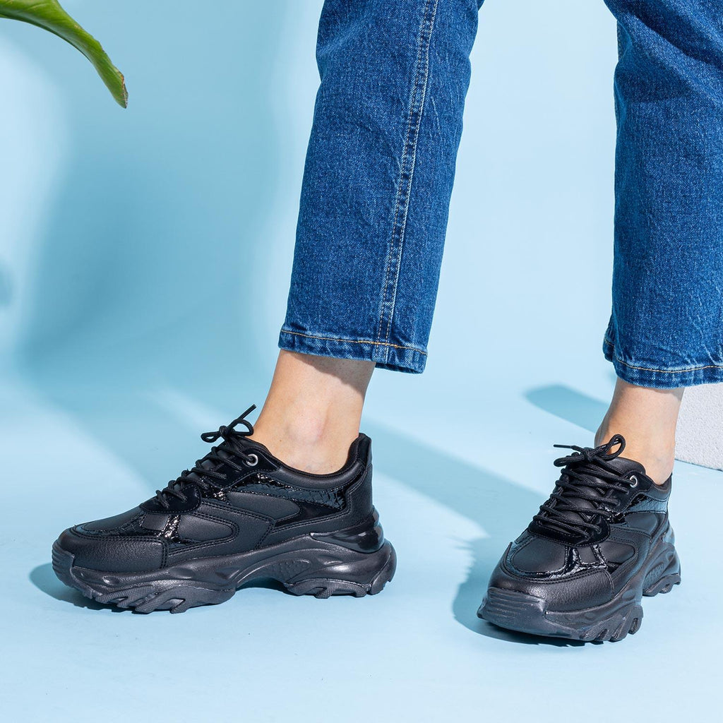Thaes Kadın Hakiki Süet Deri Siyah Spor Ayakkabı