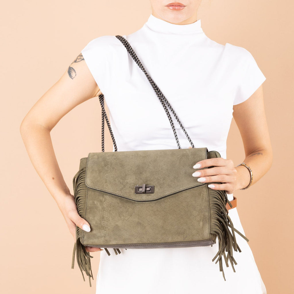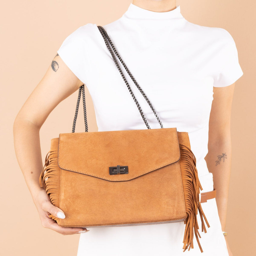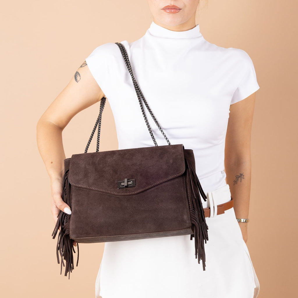 Dream Kadın Hakiki Süet Püsküllü Omuz Çantası ve Çapraz Çanta