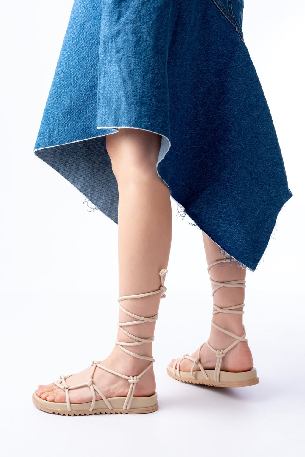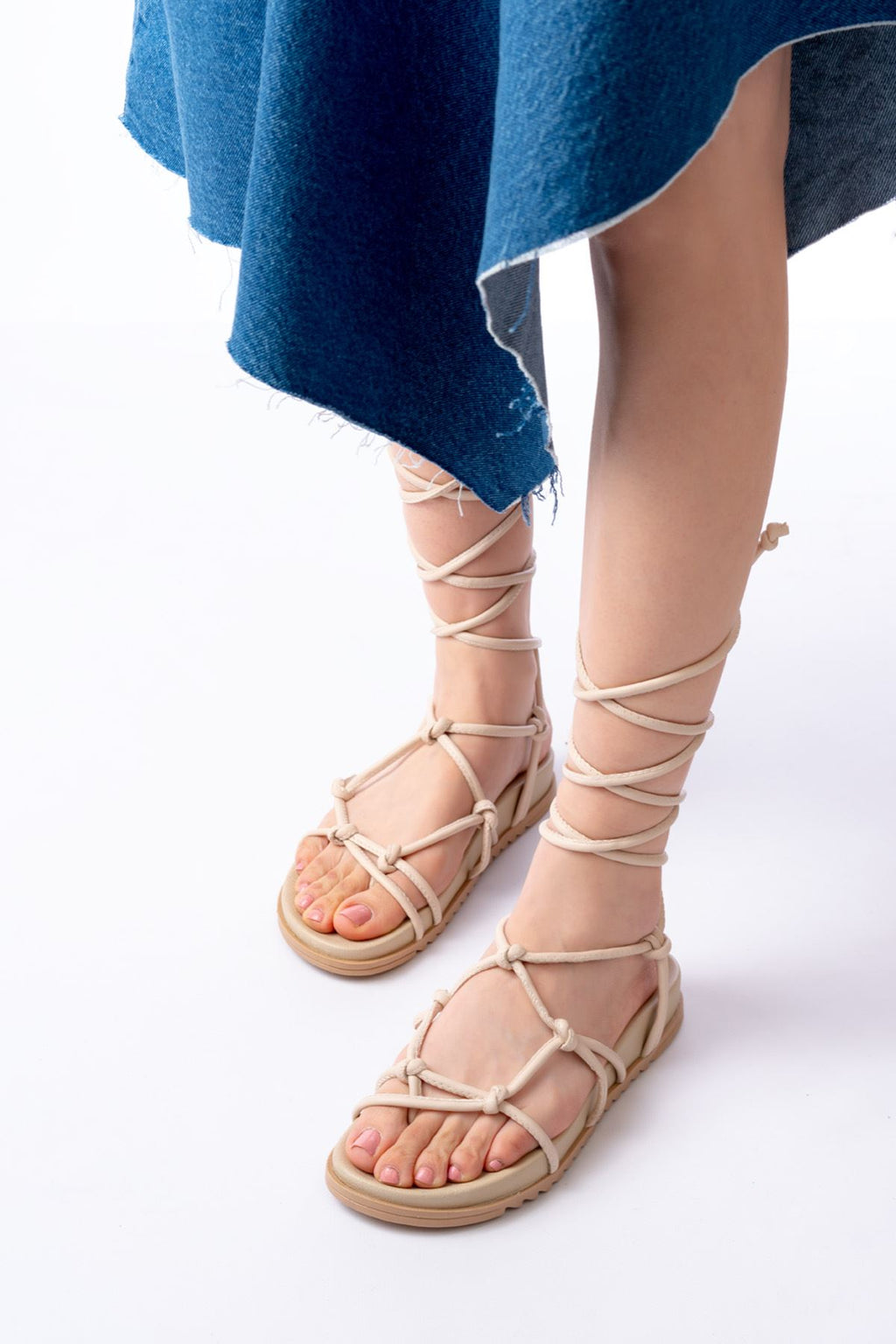 Elgan Bej Bilekten Bağcıklı Kadın Sandalet