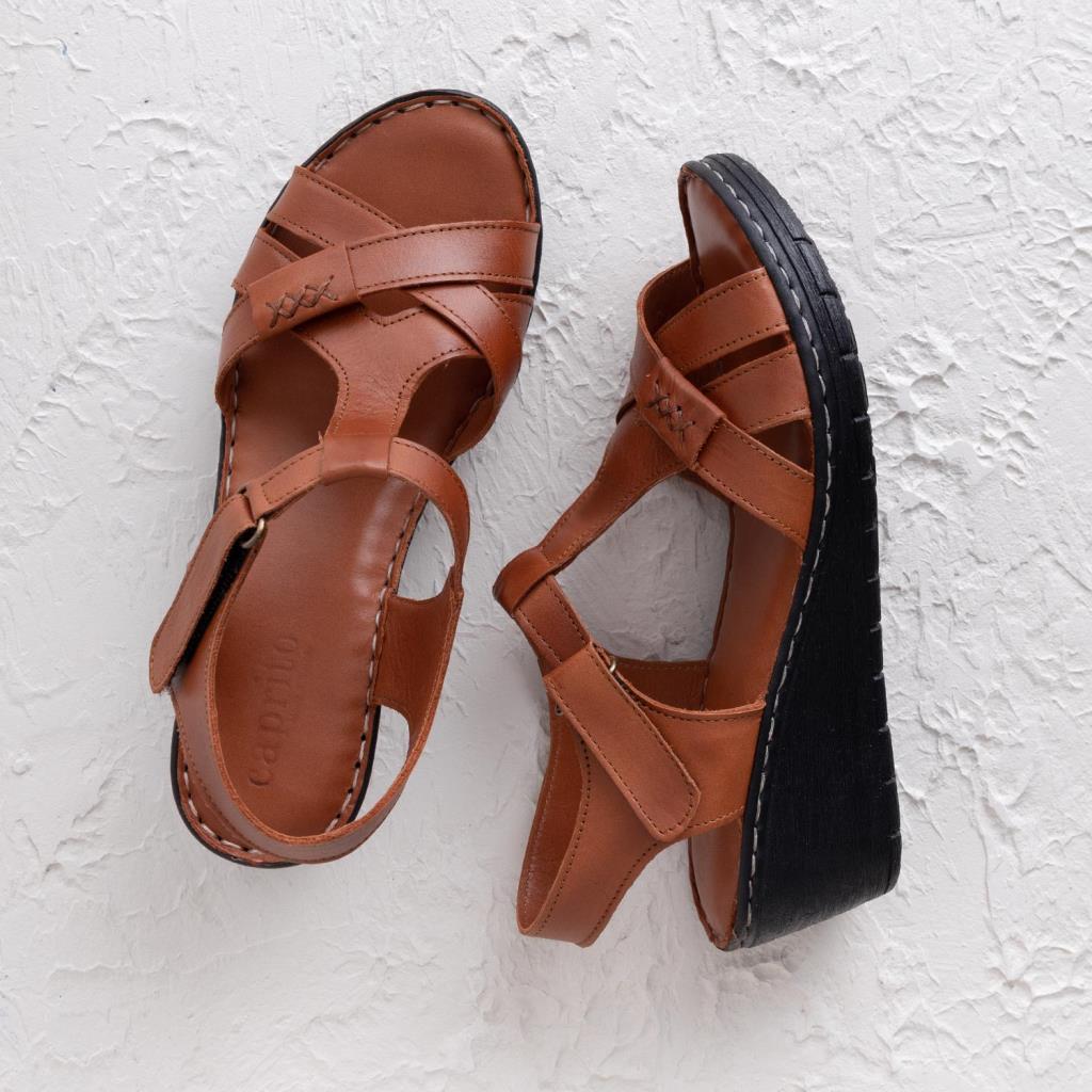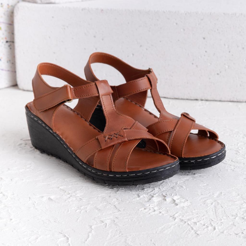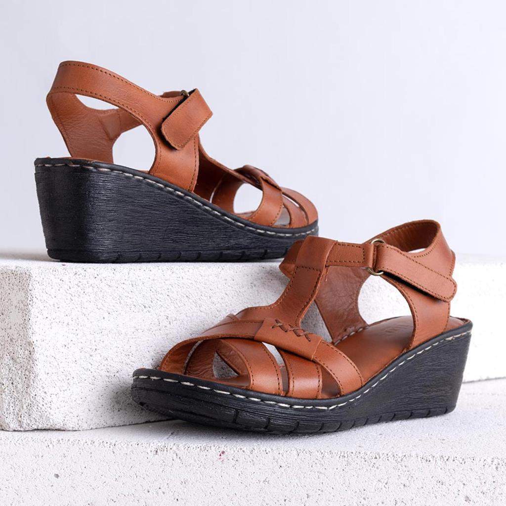 Numba Taba Hakiki Deri Çapraz Bantlı Kadın Terlik