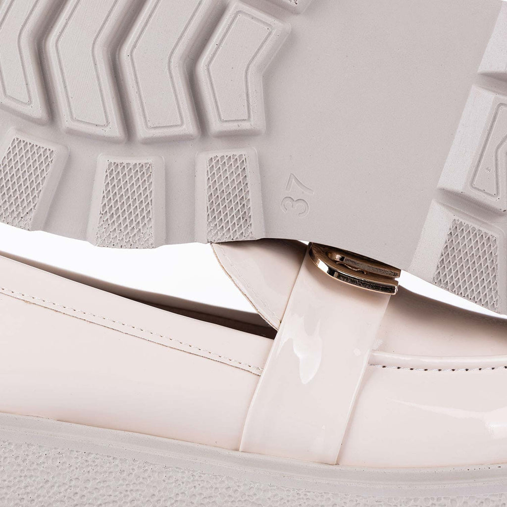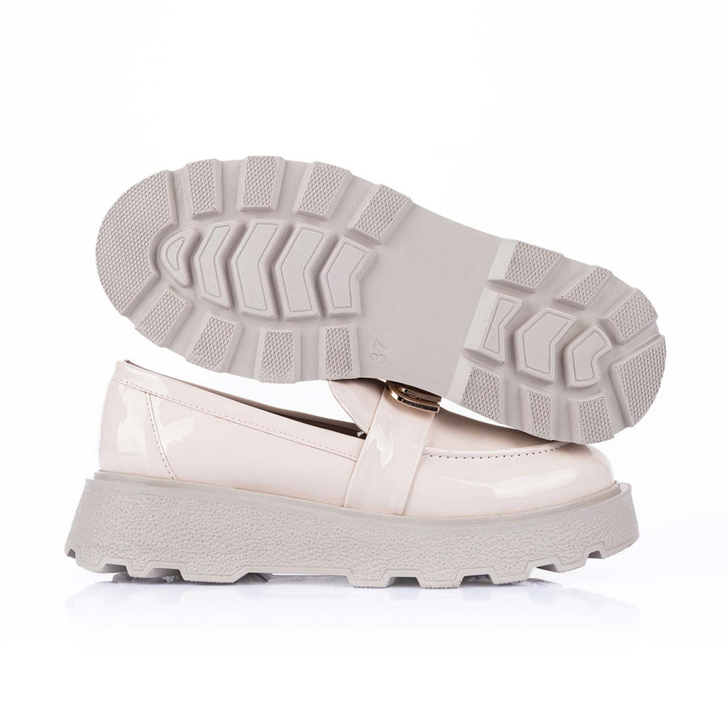 Elvan Kadın Rugan Bej Loafer Ayakkabı, klasik şıklığı modern detaylarla buluşturan zarif bir tasarıma sahiptir. Parlak rugan malzemesi, şık ve dikkat çekici bir görünüm sunarken altın detayları ile göz alıcı bir dokunuş kazandırır. Günlük kullanımda veya özel davetlerde rahatlıkla tercih edebileceğiniz bu loafer, kalın tabanı ile hem konfor sağlar hem de şıklığınızı tamamlar.