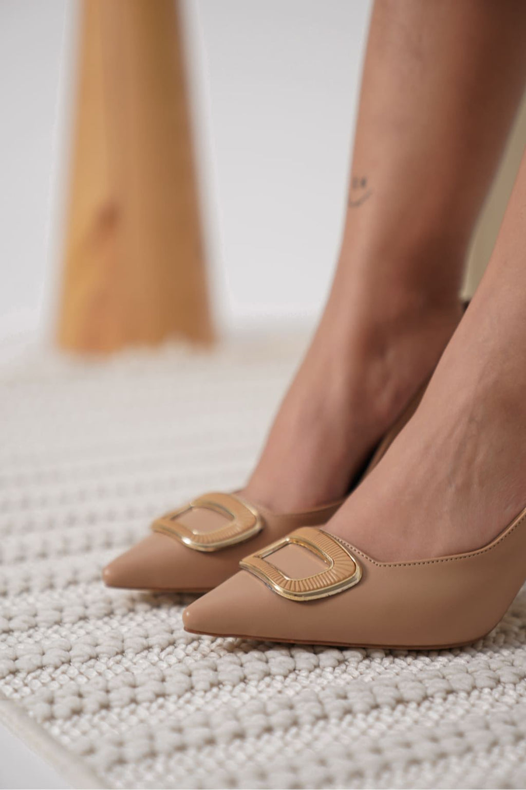 Doğal nude tonu ve ön kısmındaki tokalı detayıyla öne çıkan bu model, feminen stile yumuşak ama etkili bir ifade kazandırır. Sivri burun formu ayağa daha uzun ve zarif bir siluet sunarken, metal toka detayı tasarıma modern ve dengeli bir karakter katar. Dengeli topuk yapısı, estetik görünümü kontrollü ve güvenli bir kullanım hissiyle destekler.Günlük şıklığı tamamlayan kombinlerden özel gün stiline kadar geniş bir kullanım alanına uyum sağlayan Emery, ayağı saran yapısıyla düzenli ve net bir duruş sunar. Abartıdan uzak çizgileriyle zamansız bir görünüm arayan kadınlar için sade ama güçlü bir tamamlayıcıdır.