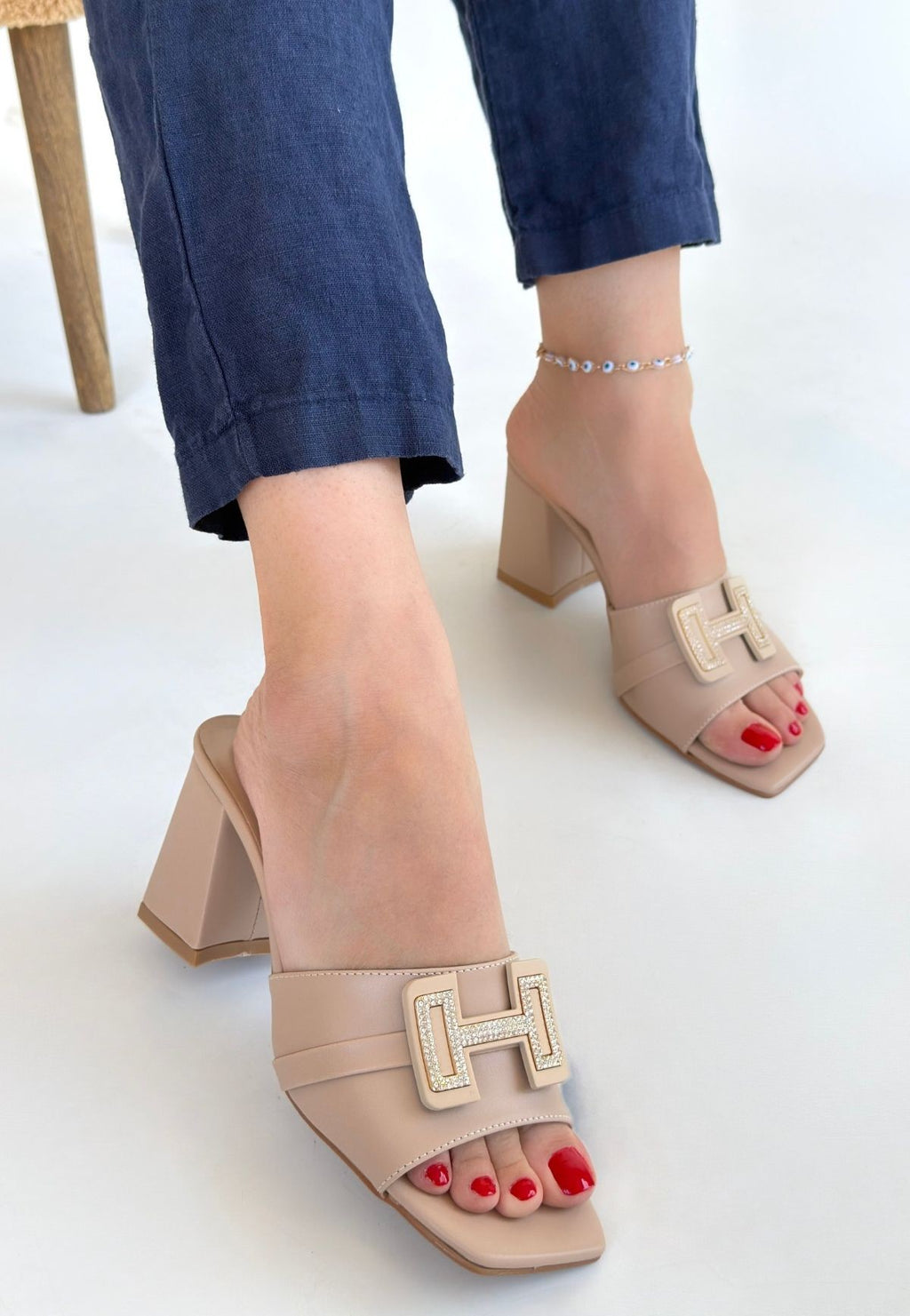 Erew Kadın Bej Topuklu Terlik