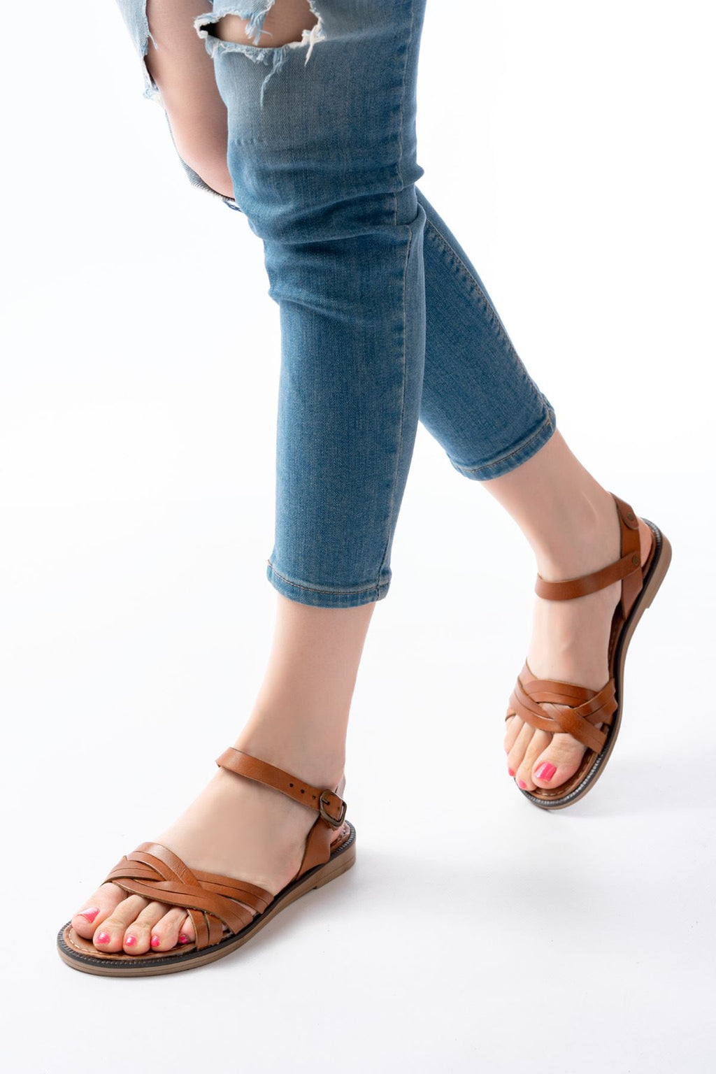 Ertaly Taba Hakiki Deri Kadın Sandalet