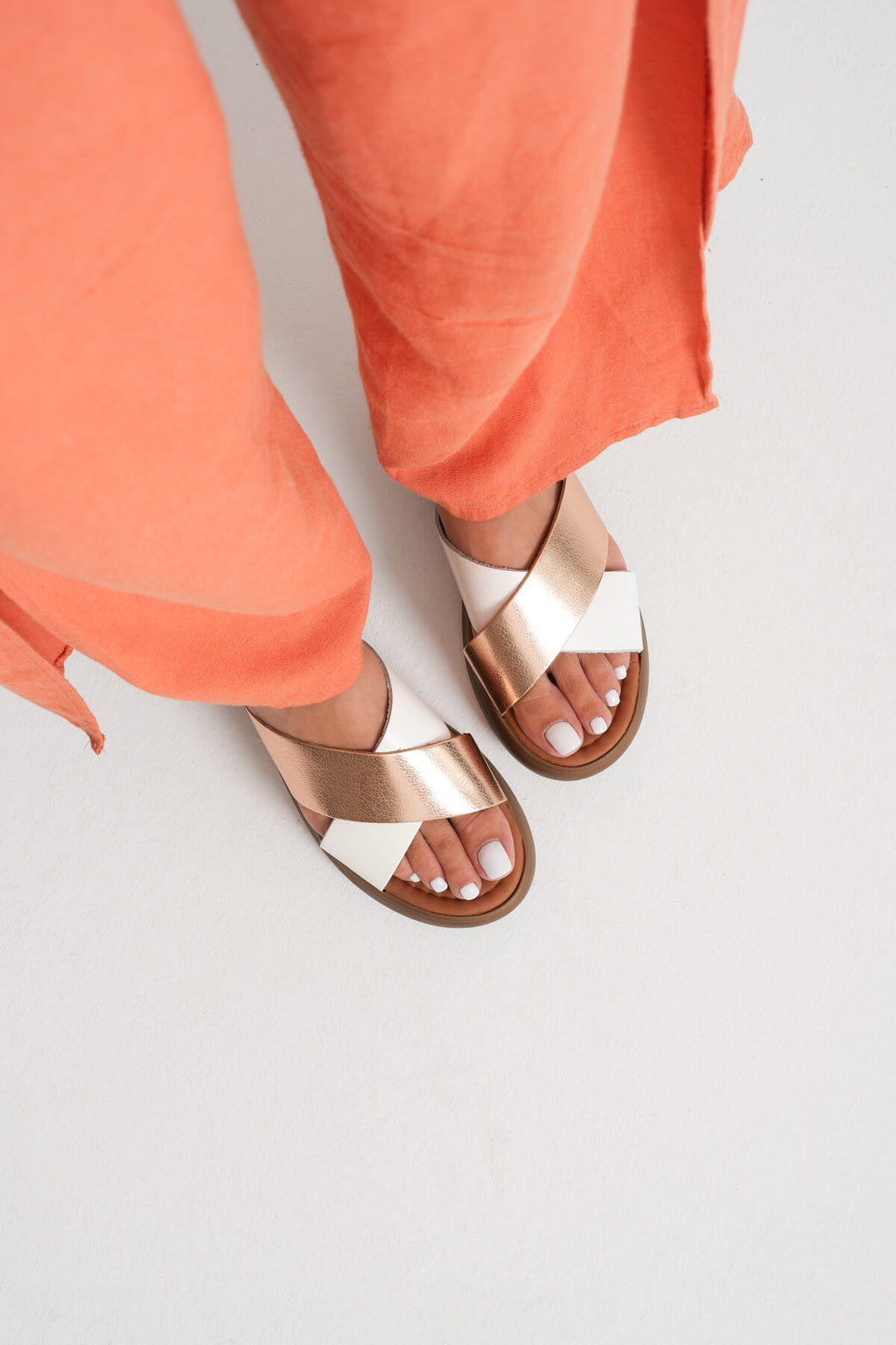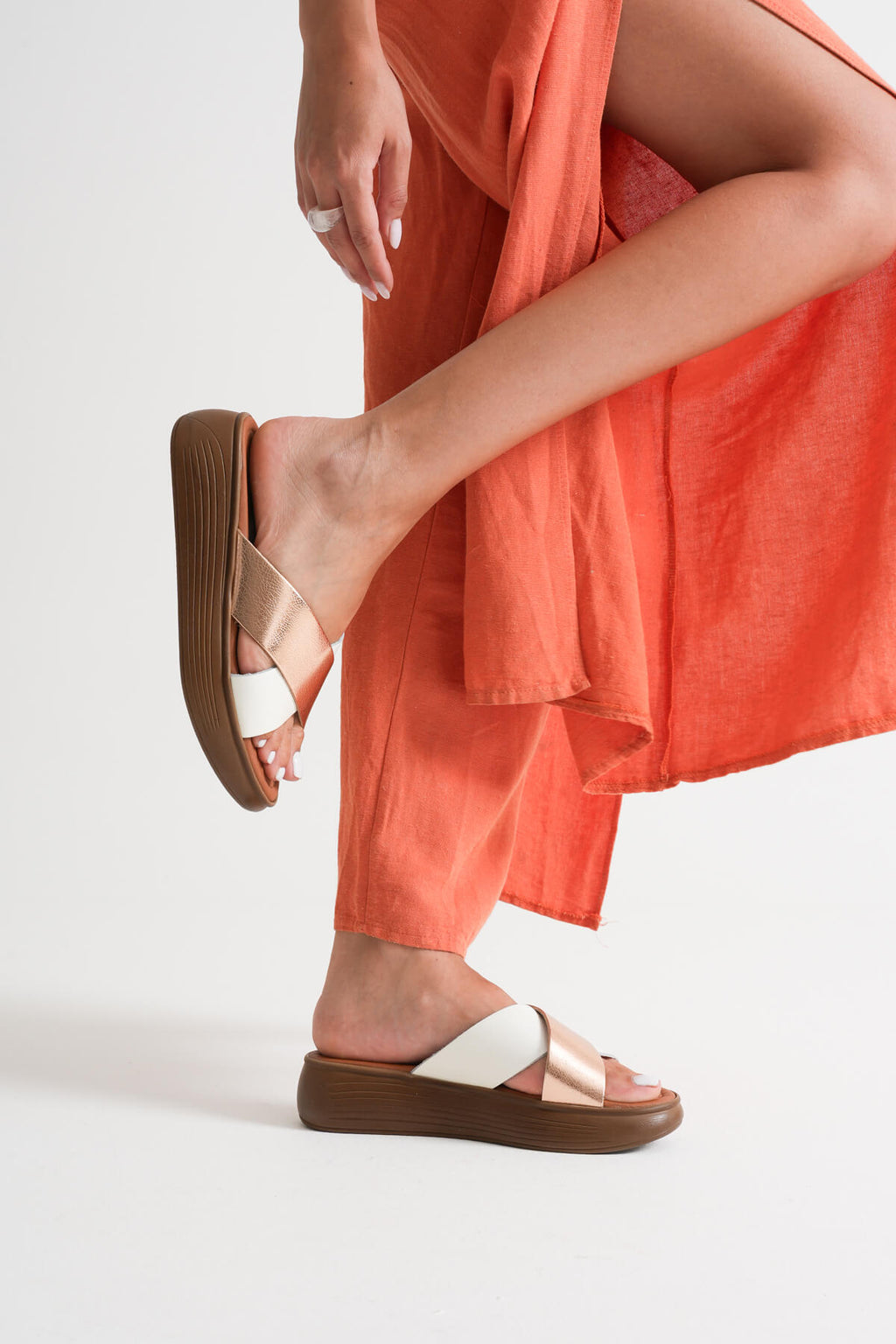 Fayn Kadın Hakiki Deri Beyaz - Altın Terlik