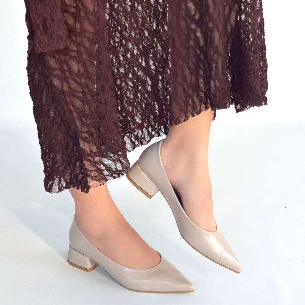 Ferla Kadın Bej Rugan Topuklu Ayakkabı