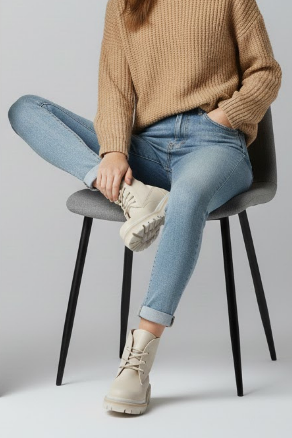 Fonsi Kadın Kalın Taban Cilt Bej Bot