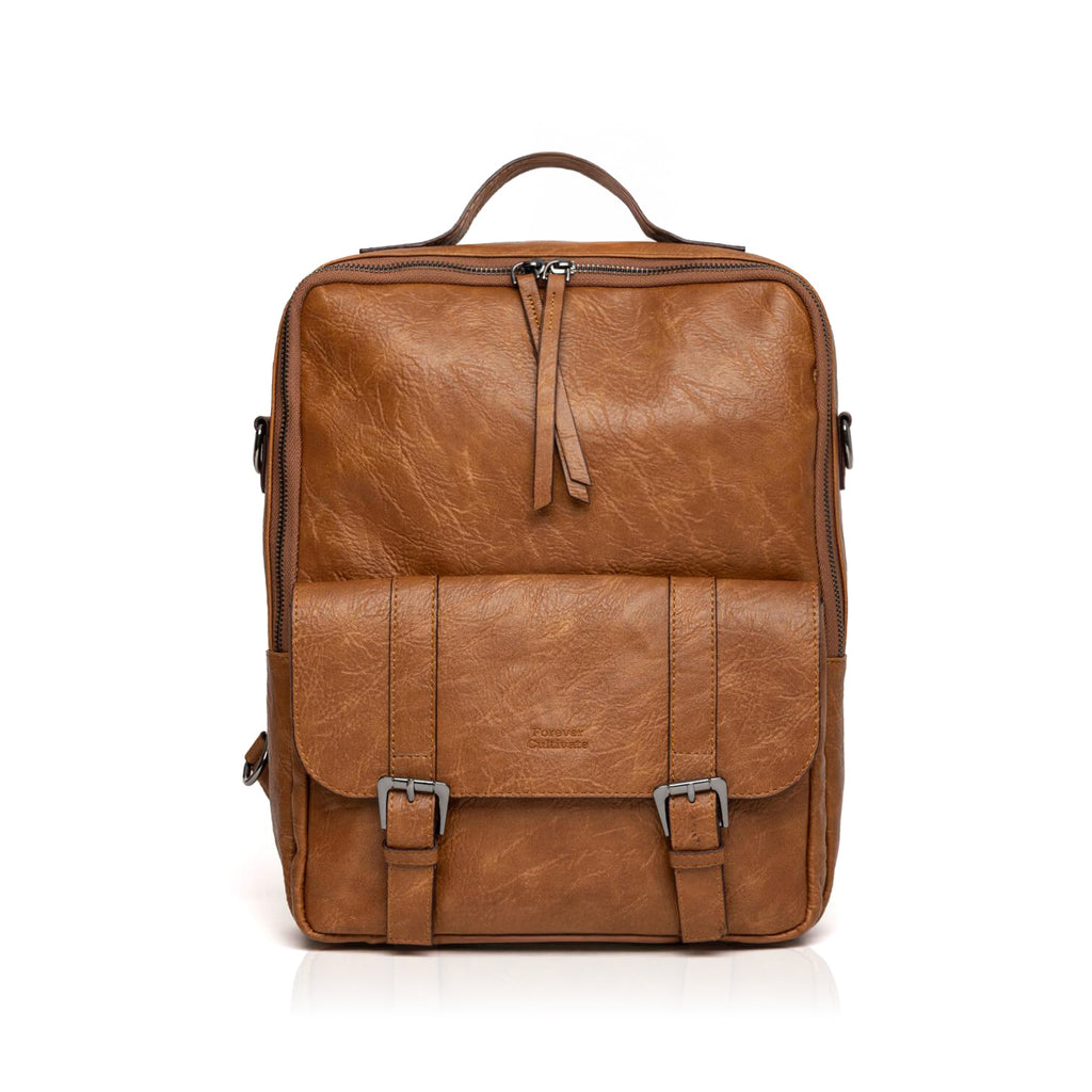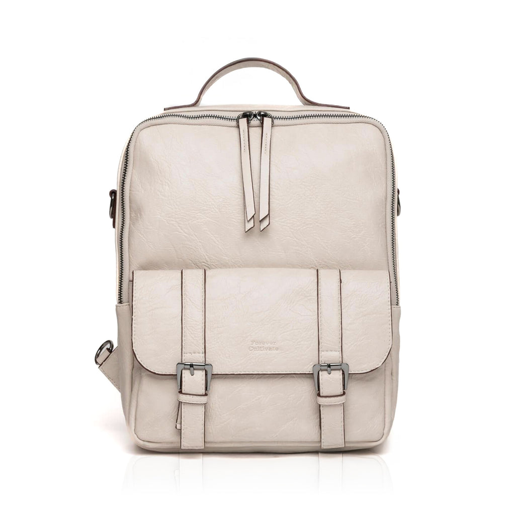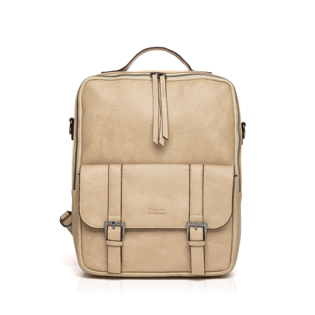 Net dönüşlü hatları ve metal aksesuarlı ön kapağı ile retro tarzına eşlik edecek bir sırt çantası..