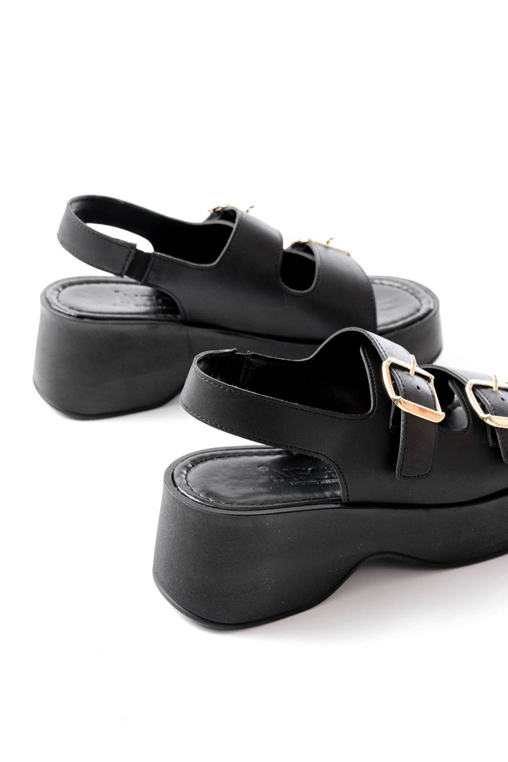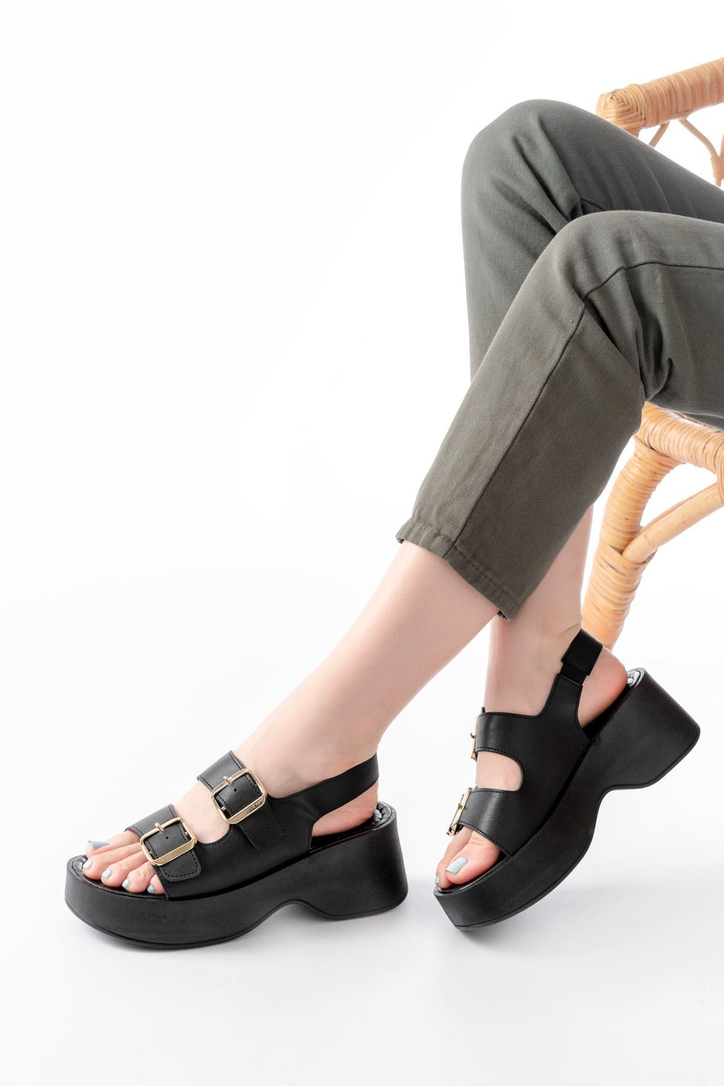 Funyar Siyah Tokalı Dolgu Topuk Kadın Sandalet