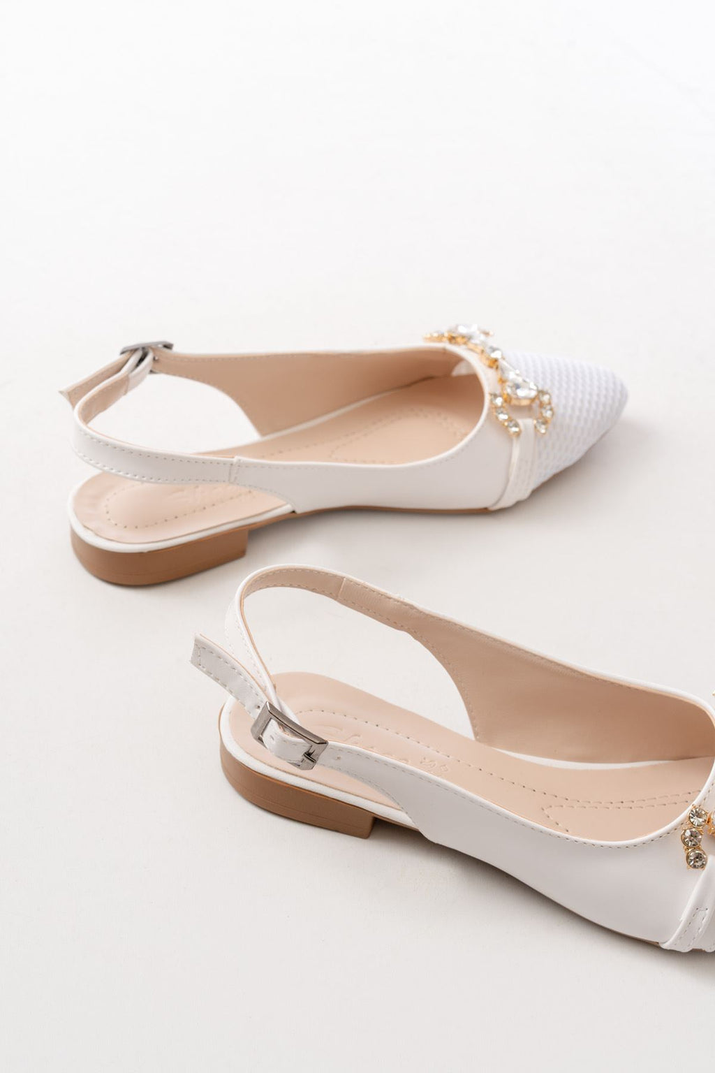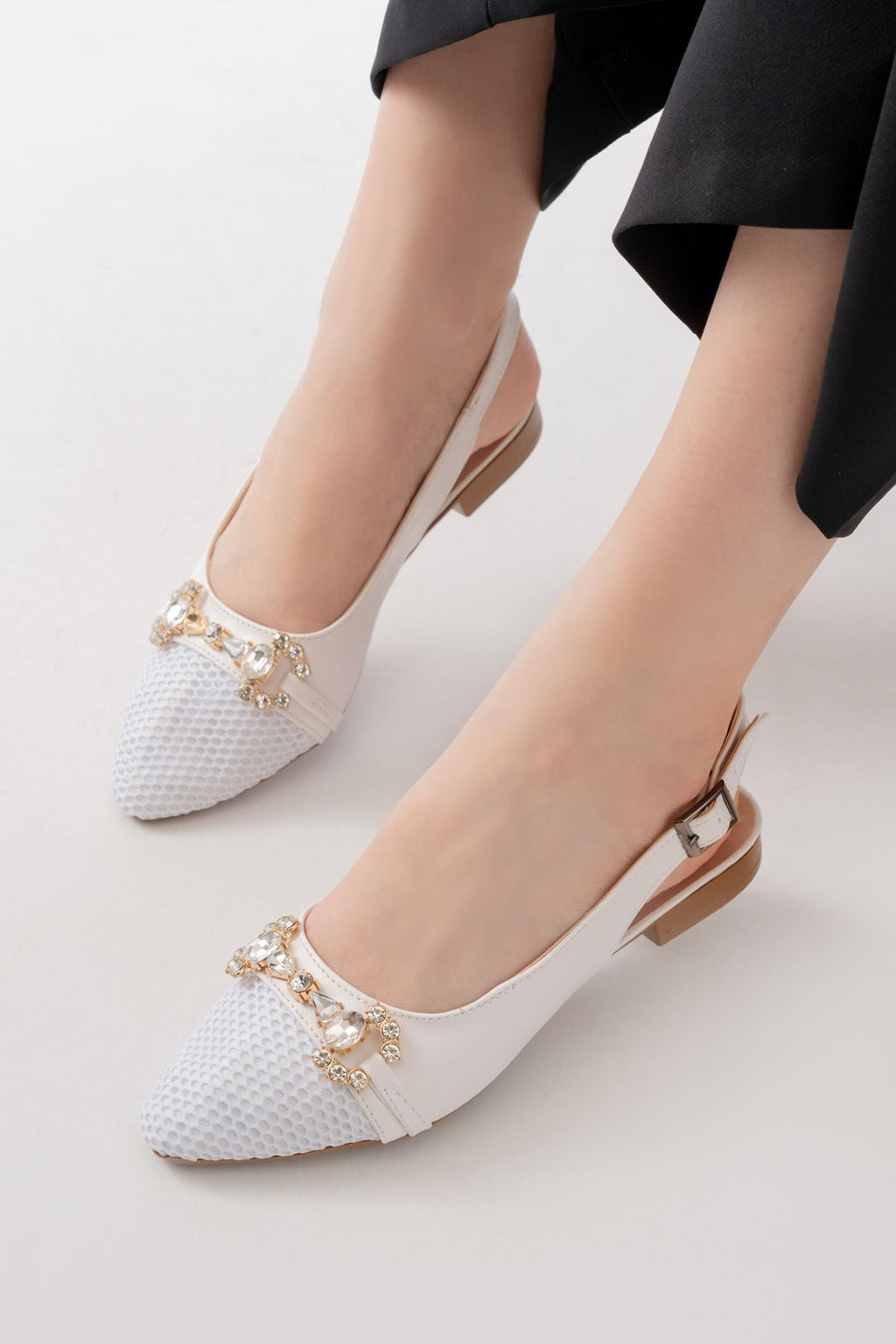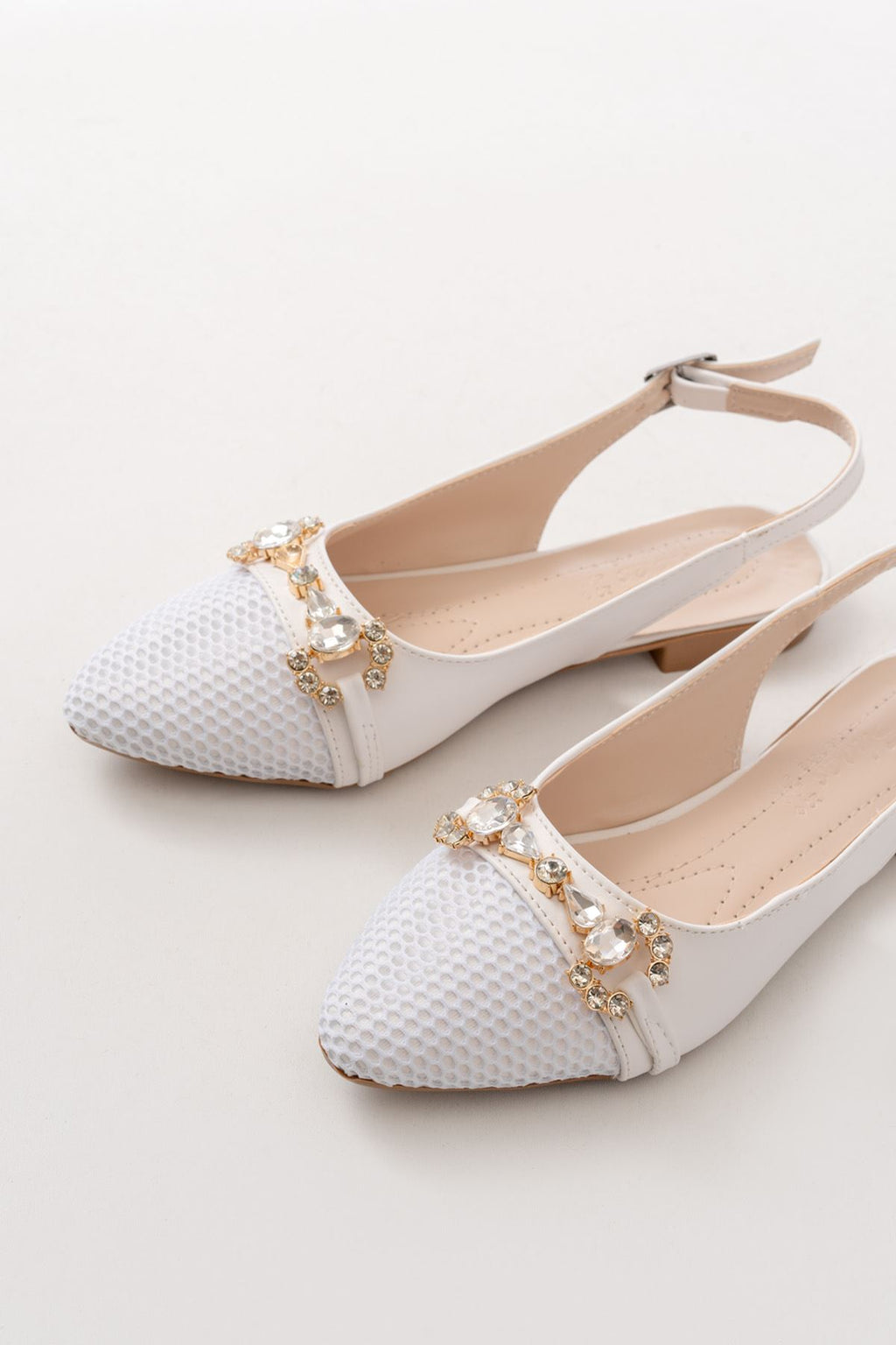 Gallyn Beyaz Günlük Fileli Taş Aksesuarlı Kadın Babet