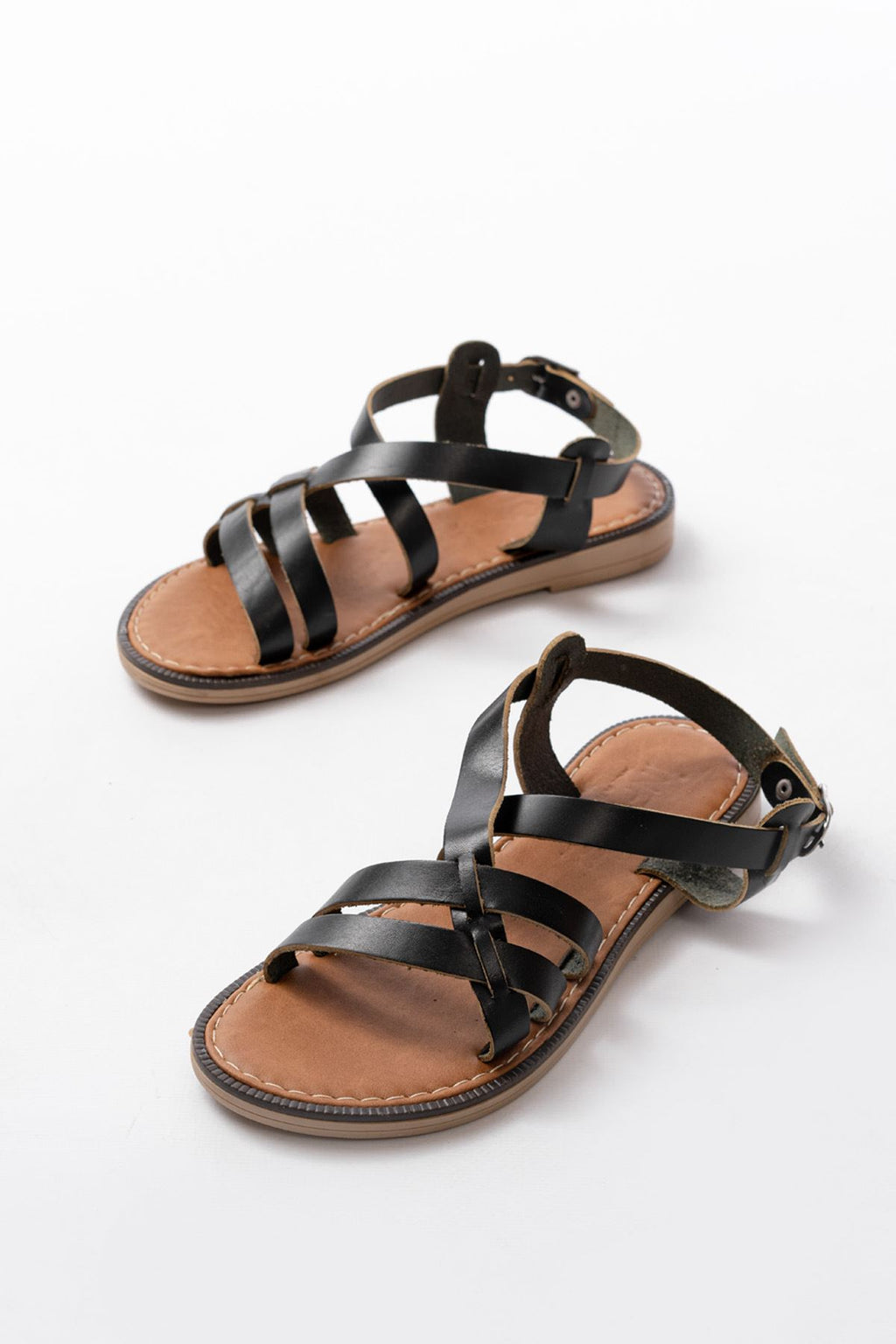 Gelbras Siyah Hakiki Deri Kadın Sandalet