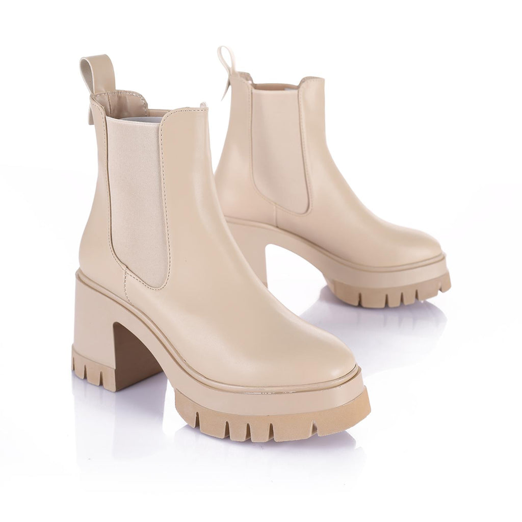 Haylin Lastik Detaylı Kadın Topuklu Bej Bot
