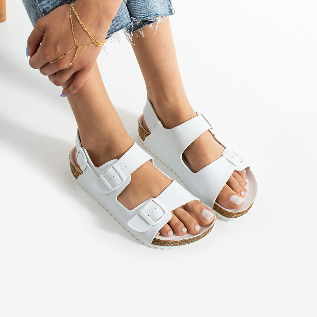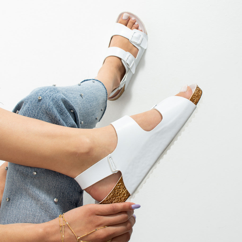 Holm Çift Tokalı Beyaz Camel Kadın Sandalet
