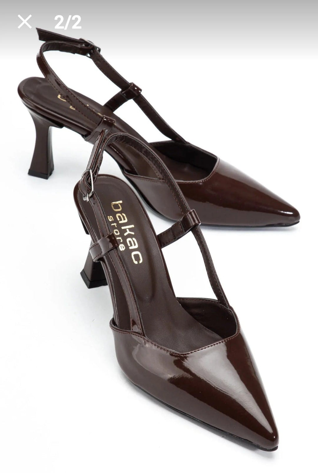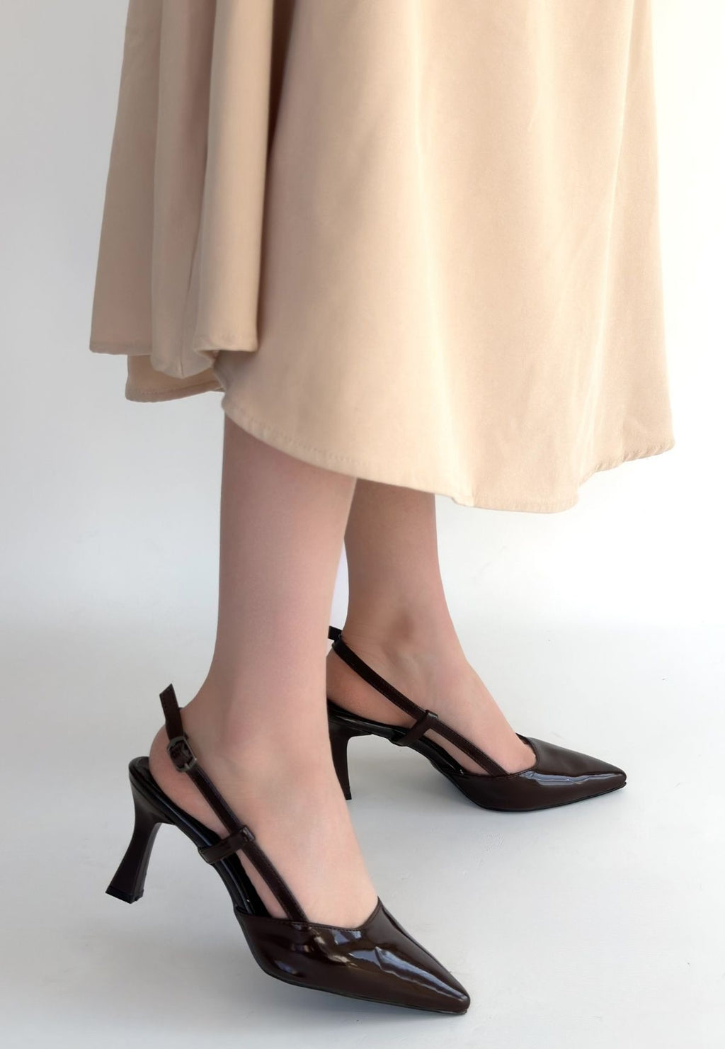 Hoost Kadın Kahverengi Rugan Sivri Burun Topuklu Ayakkabı