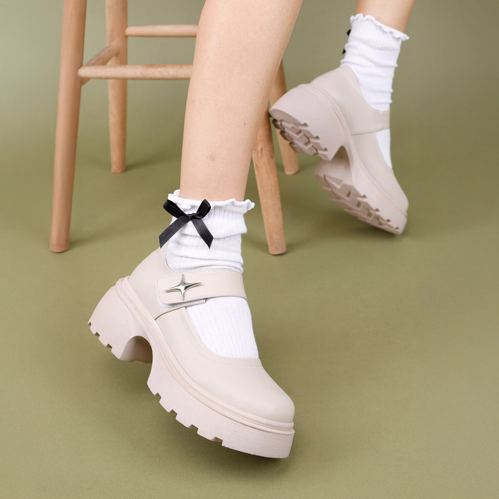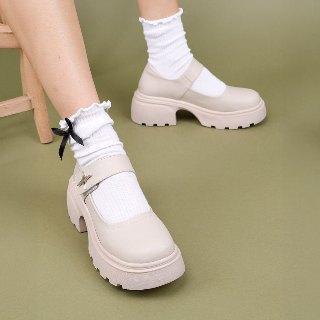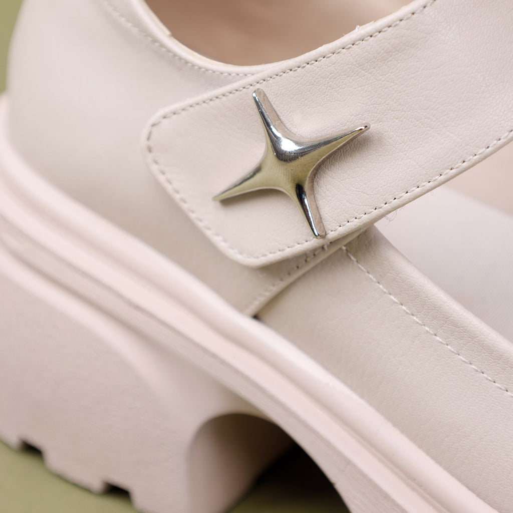Horana Kadın Kalın Tabanlı Bej Babet Ayakkabı