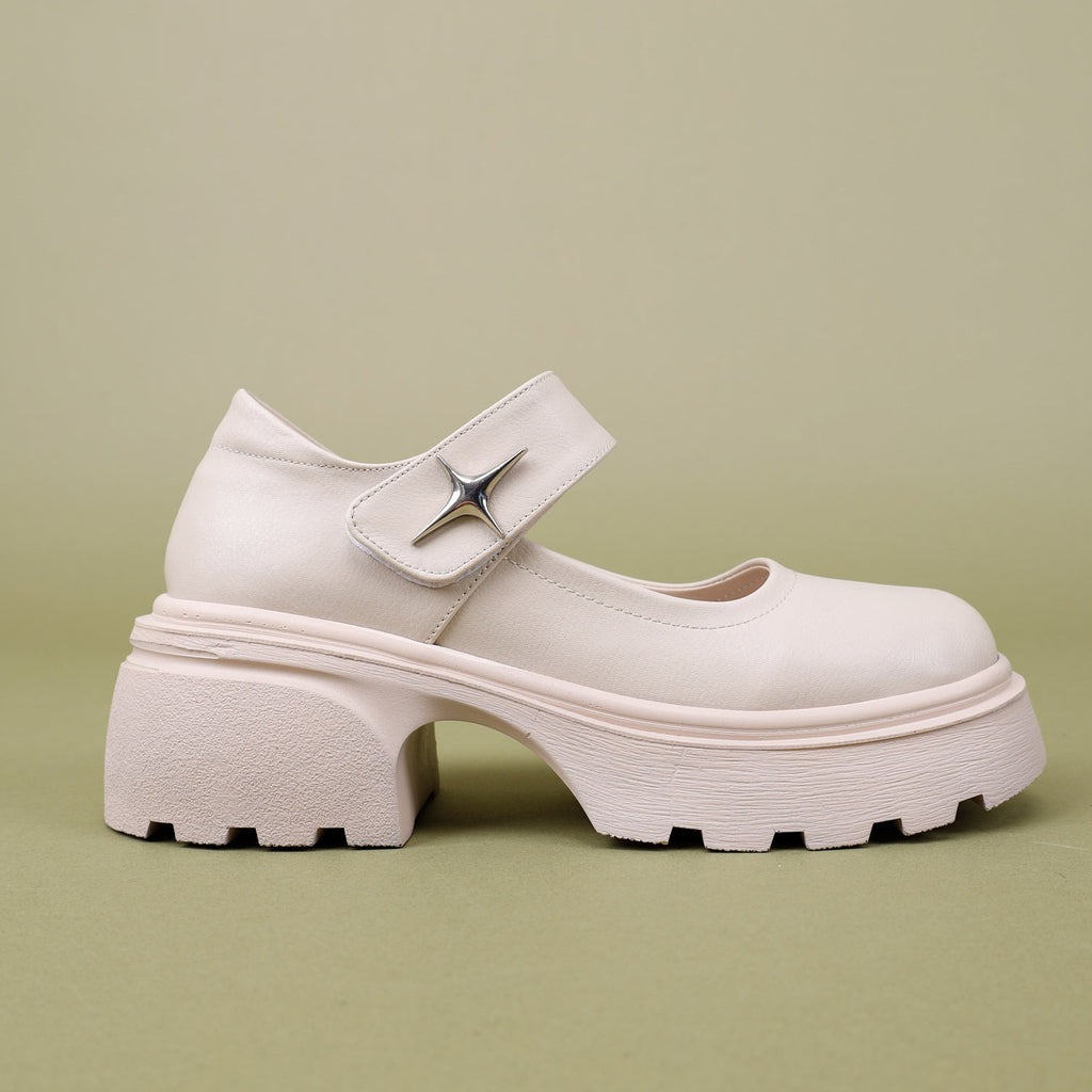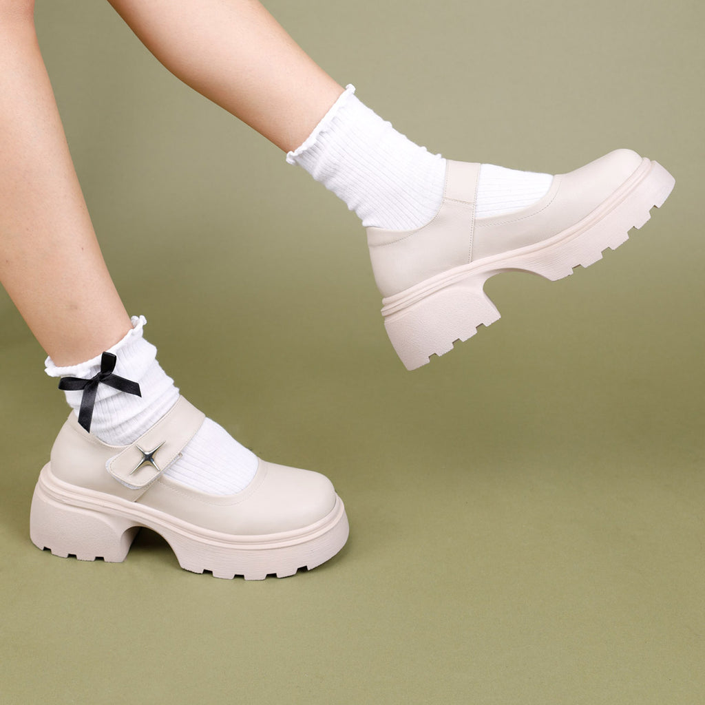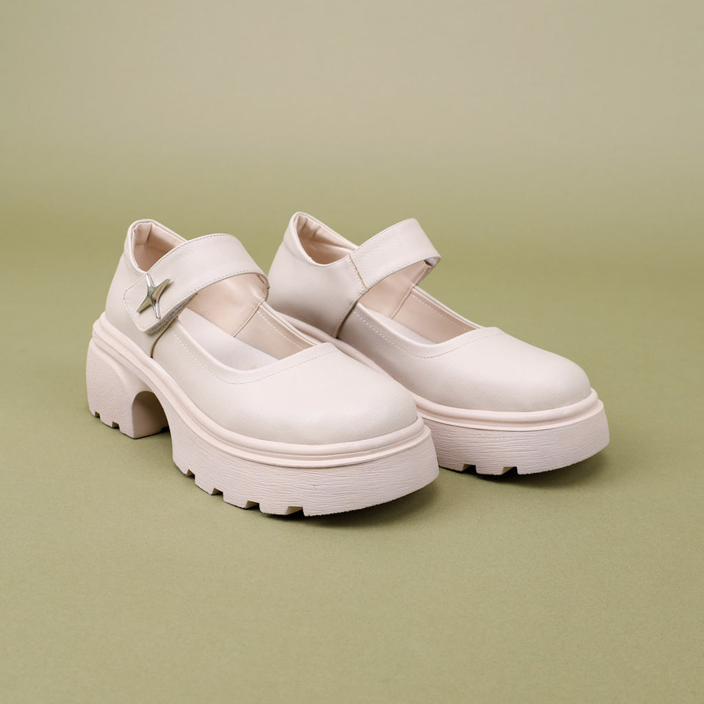 Horana Kadın Kalın Tabanlı Bej Babet Ayakkabı