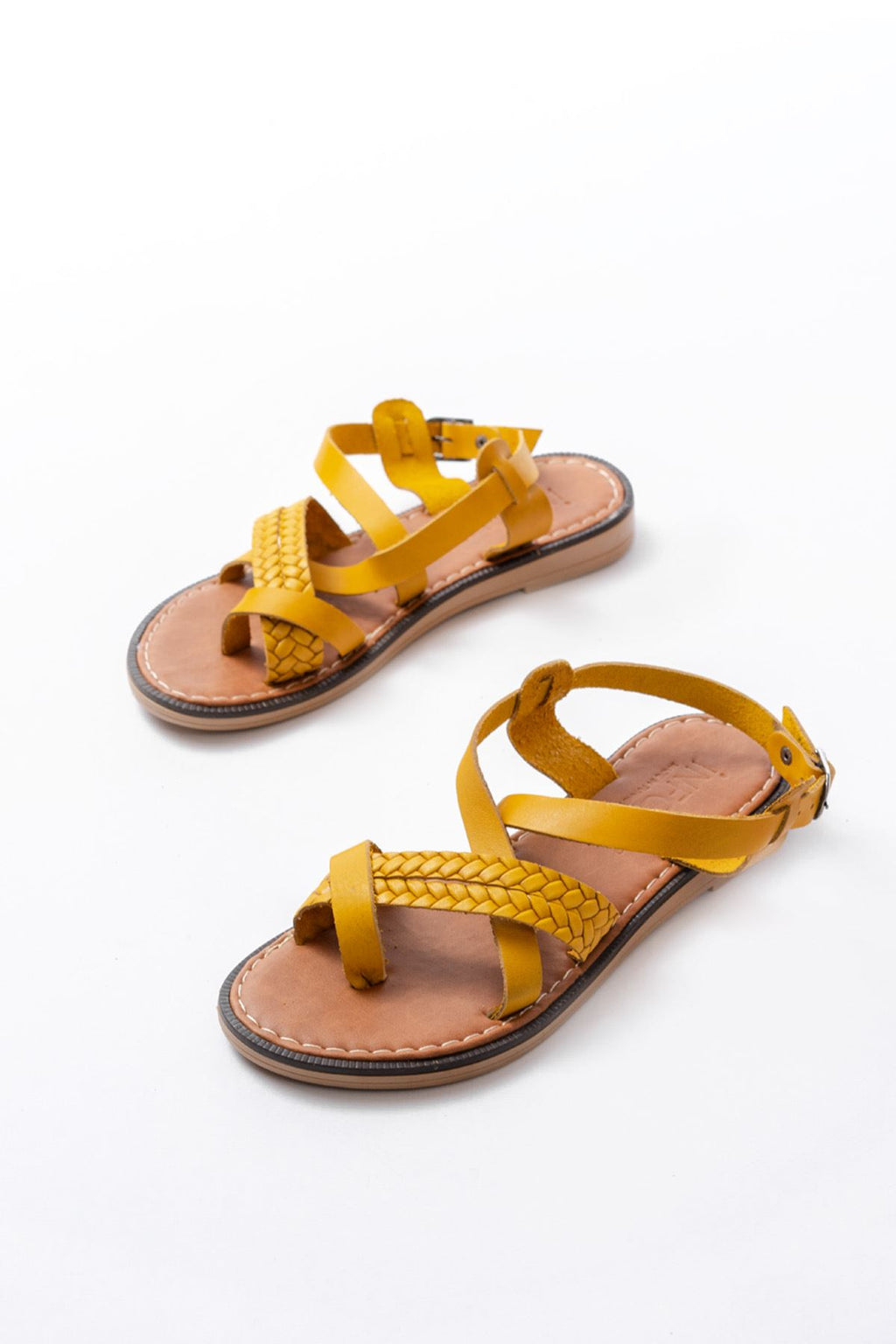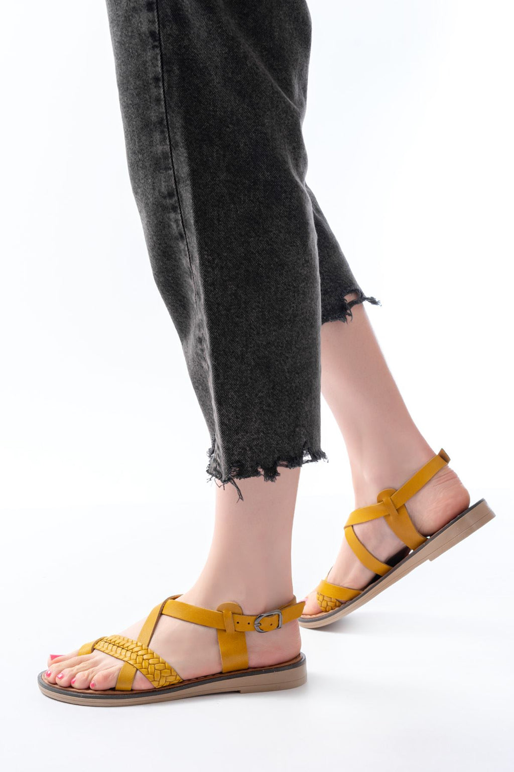 İnce ve hafif taban yapısı sayesinde gün boyu rahat bir kullanım sunar. Örgü detaylı ön bant tasarımı ayağı nazikçe kavrarken, ayarlanabilir arka kayışı kişisel bir tutuş sağlar. Canlı hardal tonu ve doğal deri dokusuyla yaz kombinlerine enerjik bir dokunuş katan bu model, hem günlük hem tatil stilinde ferah ve konforlu bir tercih sunar.
