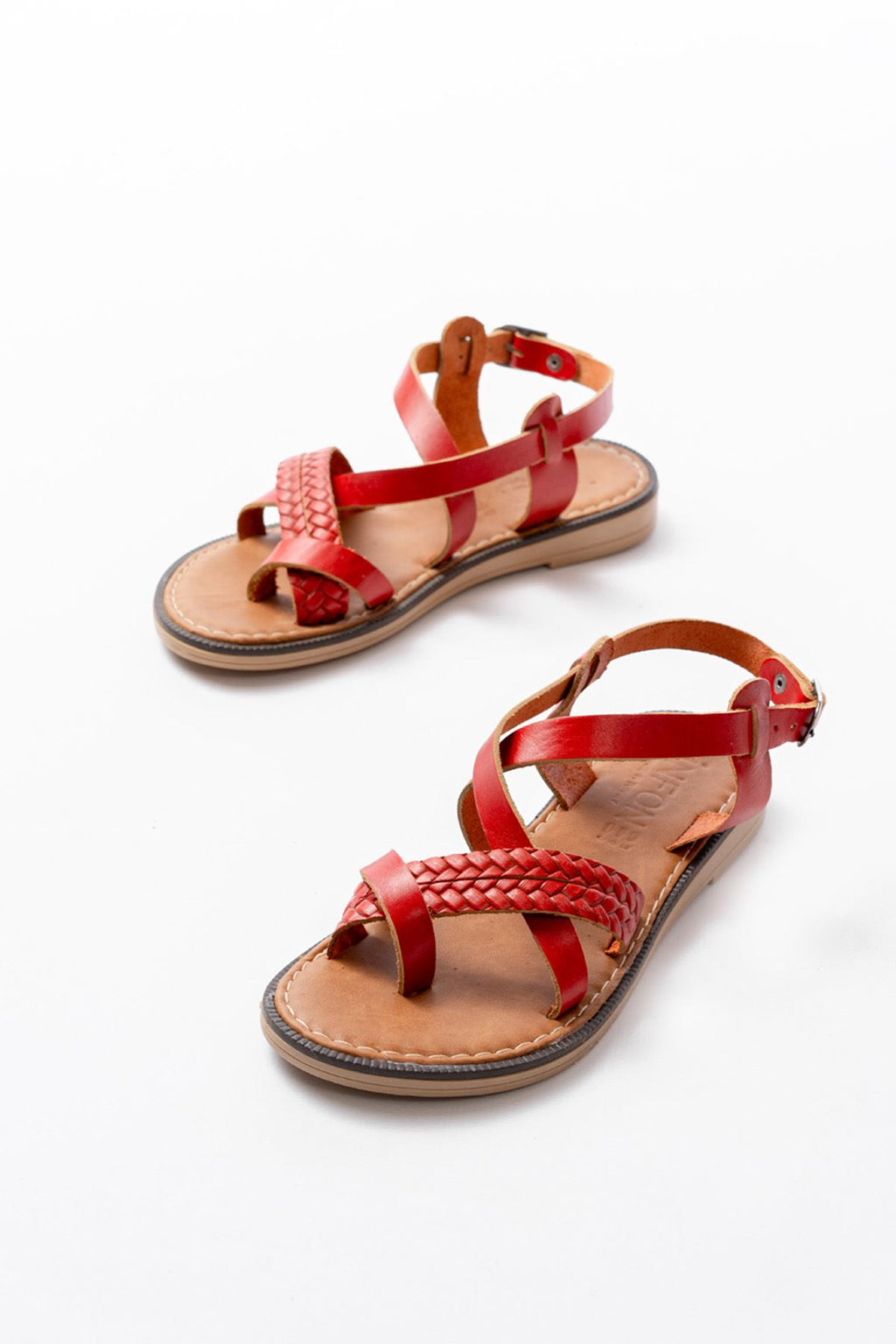 Jarman Kırmızı Hakiki Deri Kadın Sandalet