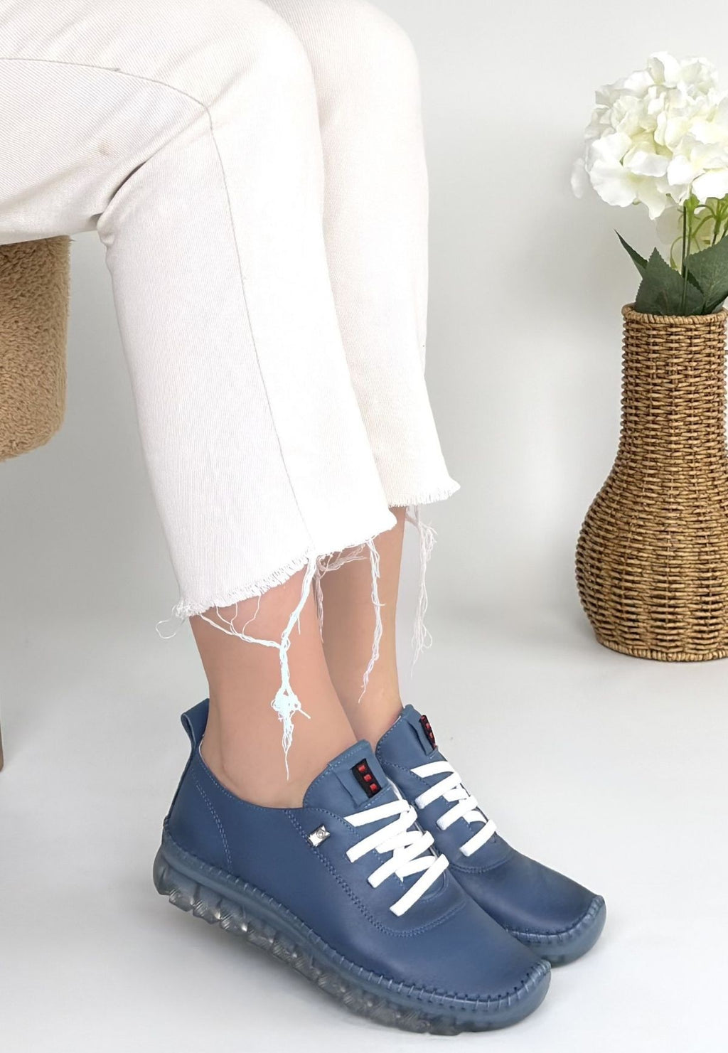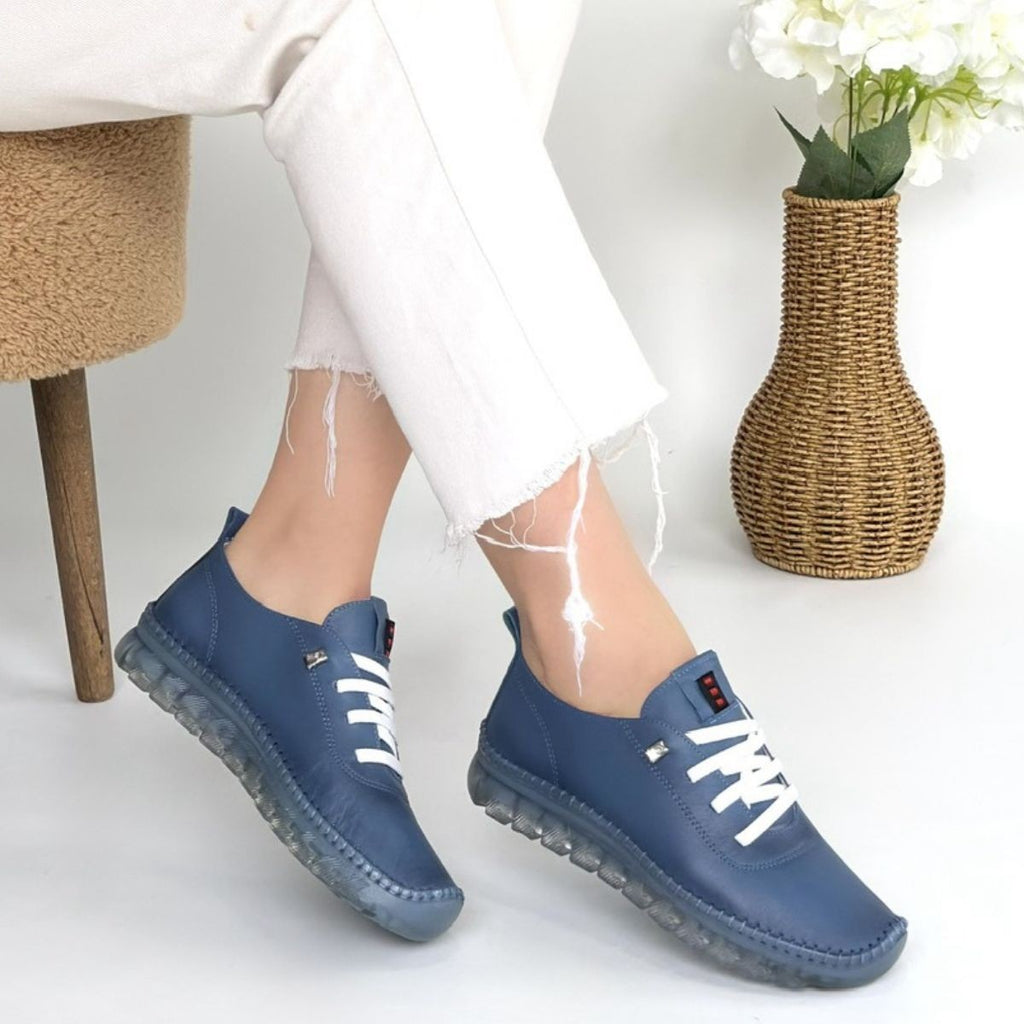 Jiten Kadın Mavi Hakiki Deri Bağcıklı Spor Ayakkabı