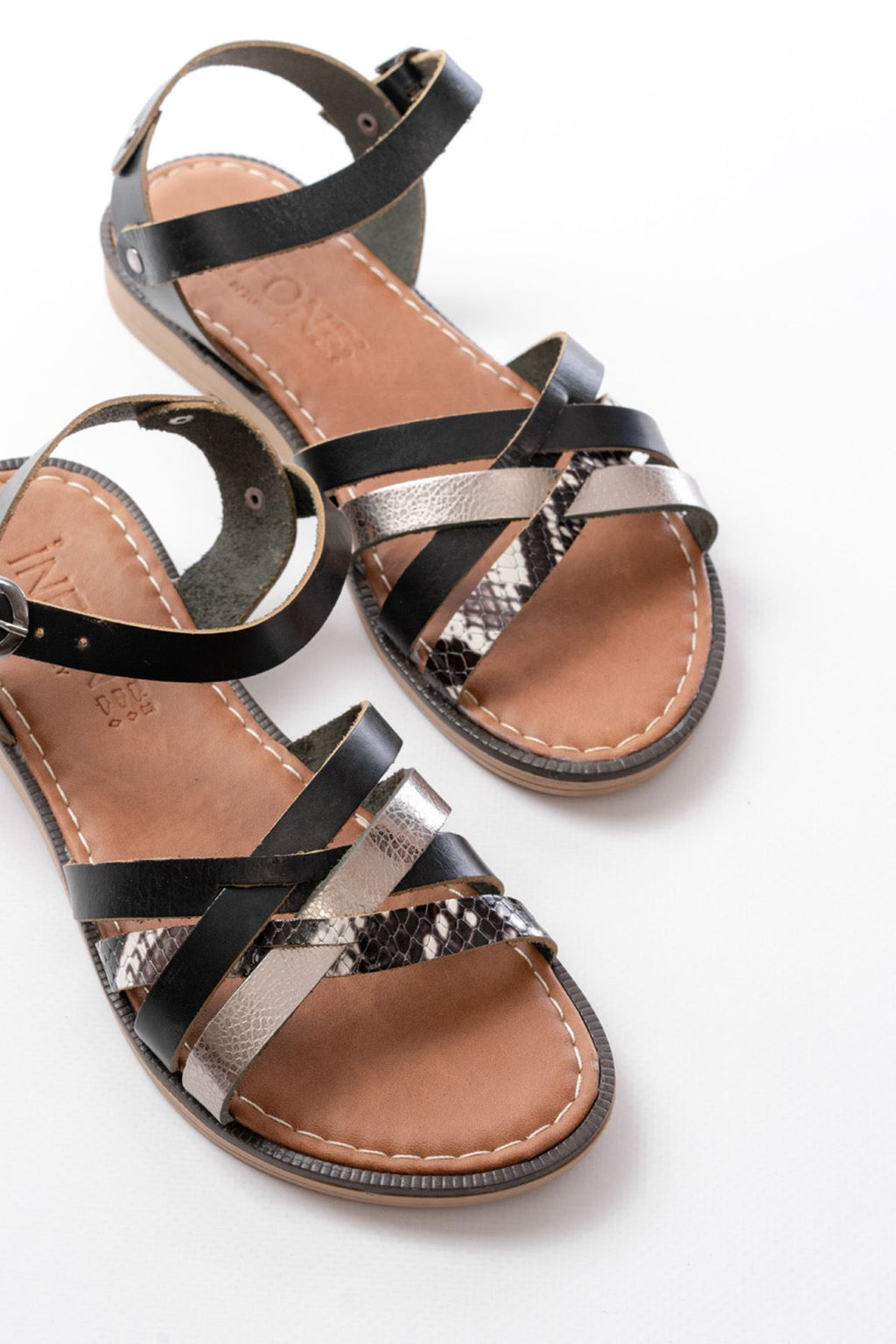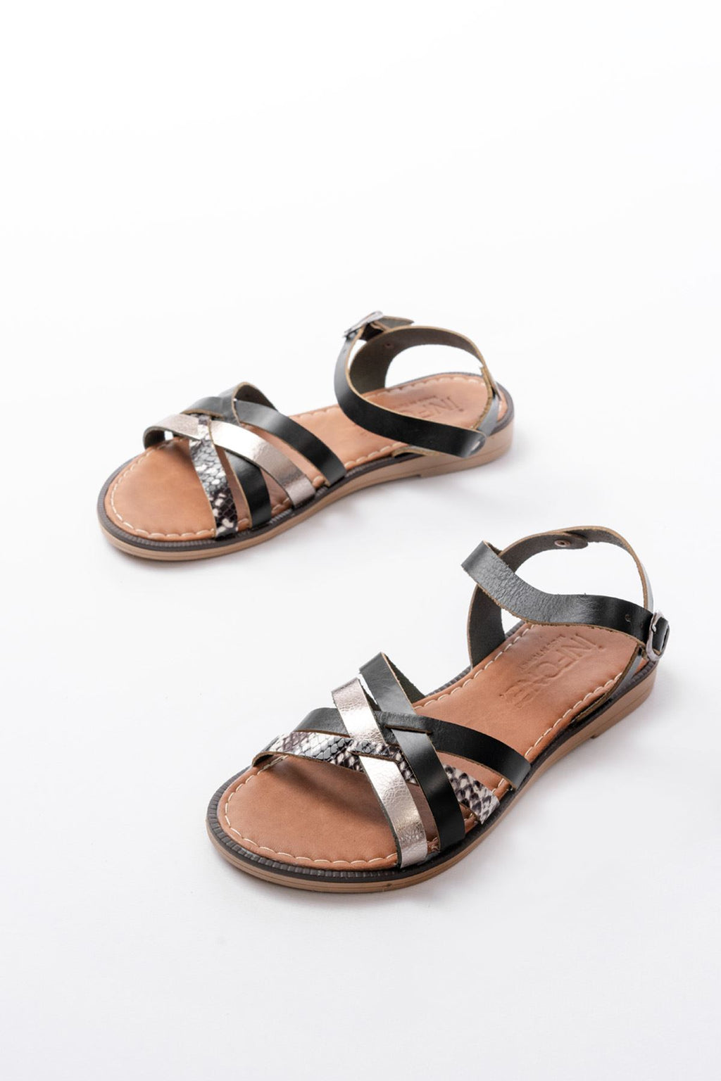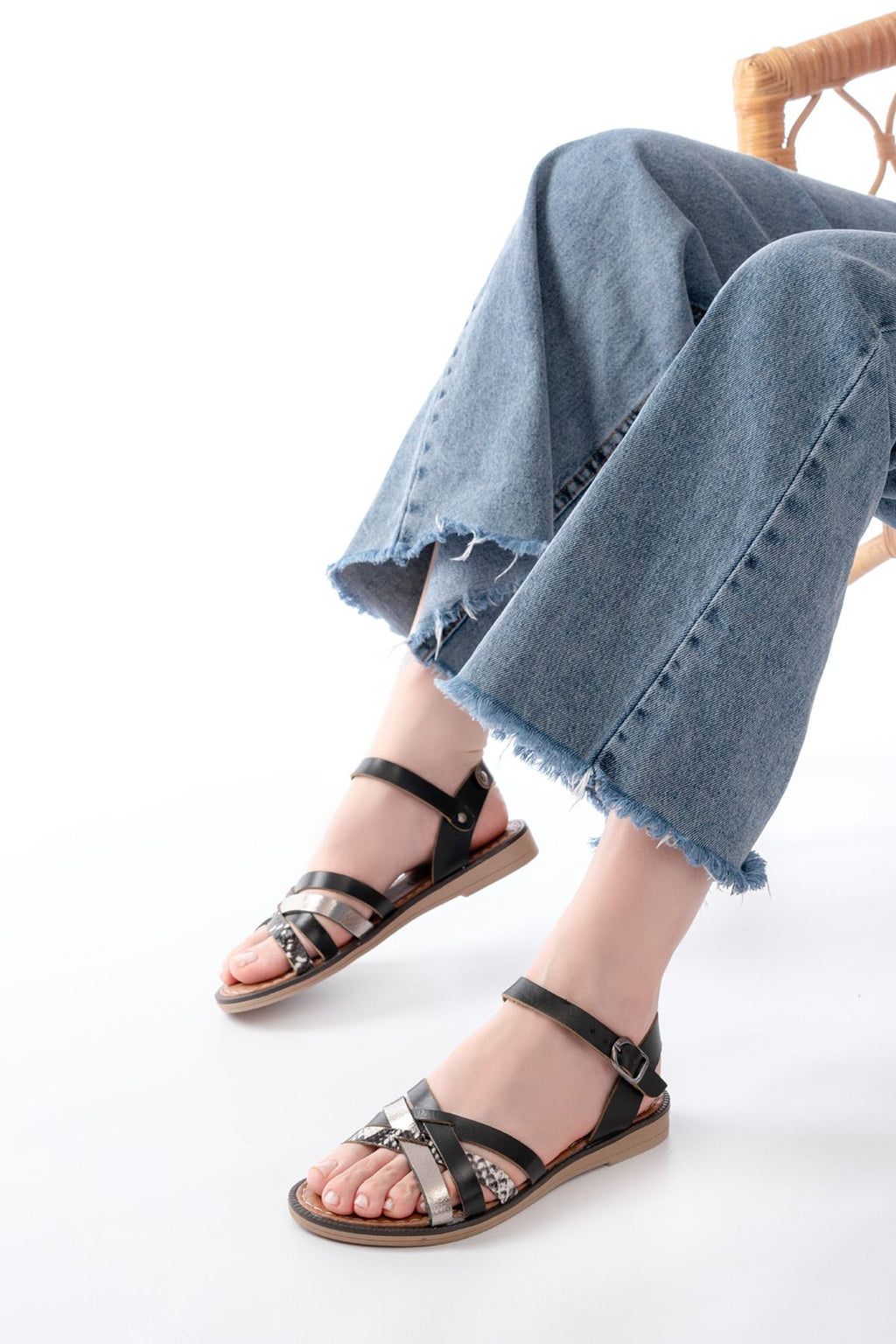 Jonsan Siyah Garni Hakiki Deri Kadın Sandalet